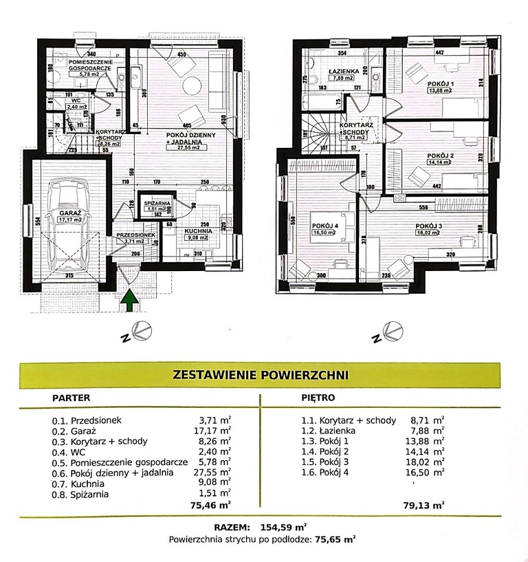 Dodatkowo powierzchnia strychowa ok. 75,65 m2 po podłodze.