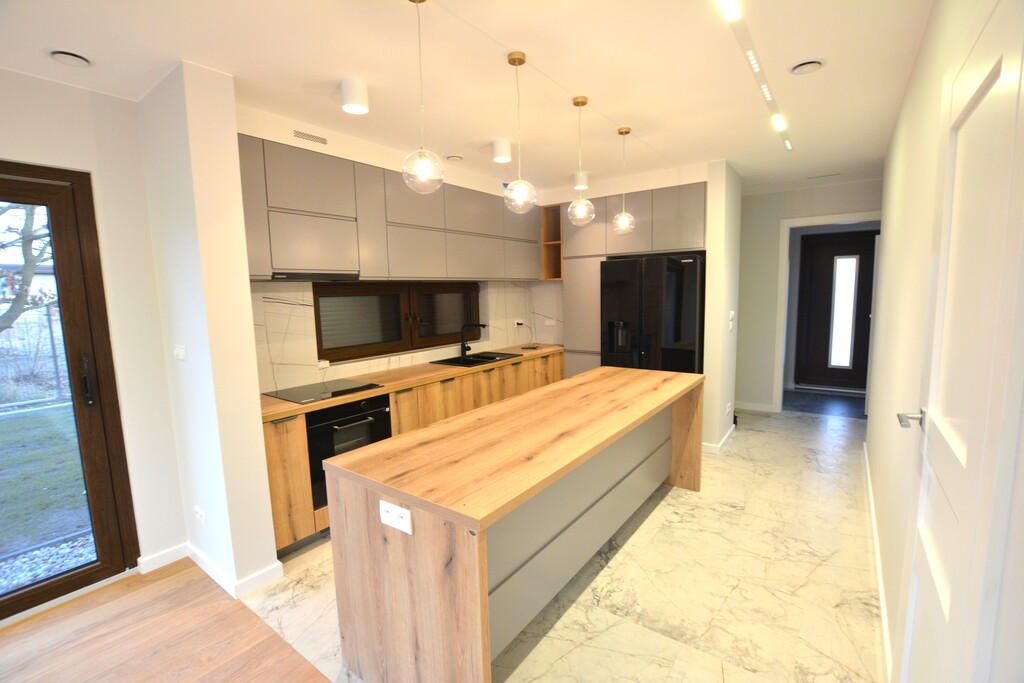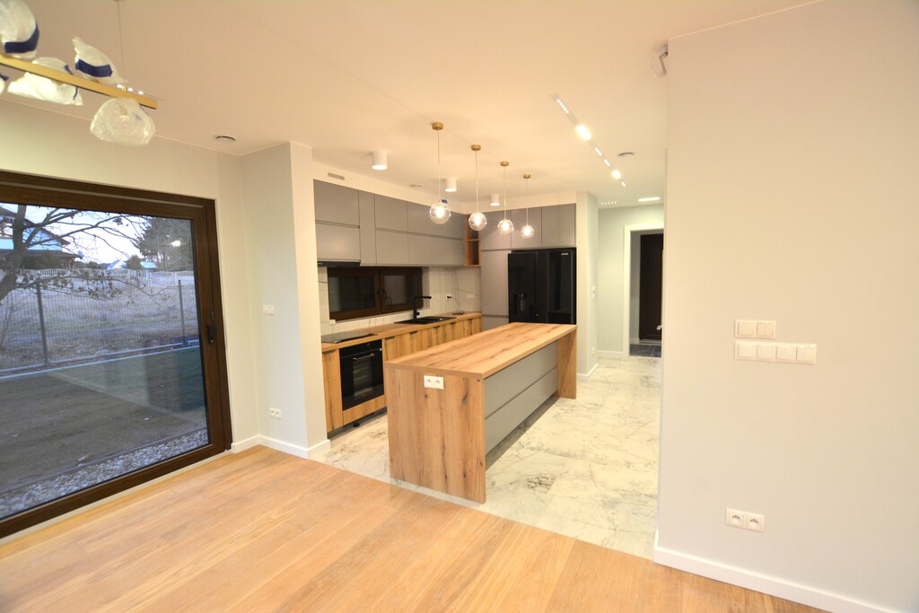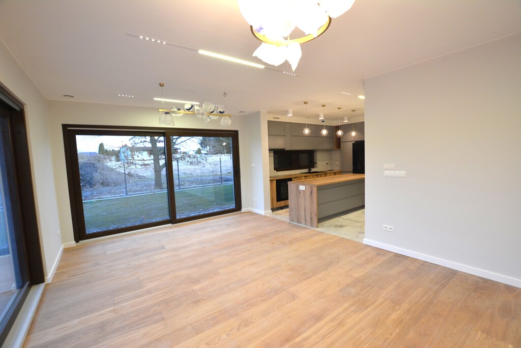 - duży przestronny salon o powierzchni ok 40m2, połączony z nowoczesną otwartą na salon w pełni wyposażoną kuchnią z oknem,