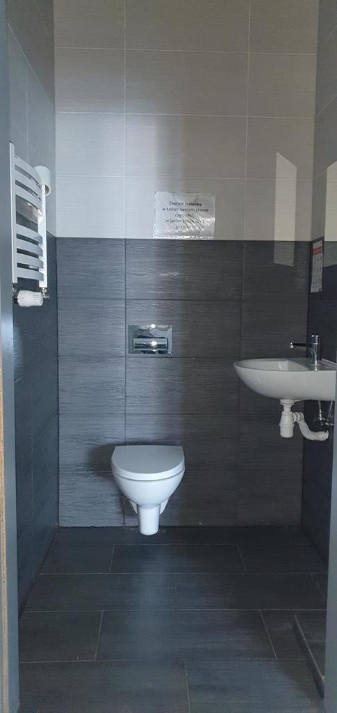 Lokal w stanie dobry, wyremontowane łazienki z kabinami prysznicowymi i wc, NOWE OKNA PCV, podłogi w sali głównej posadzka, w pozostałej części gres, ściany gładzone pomalowane, podwieszany sufit.