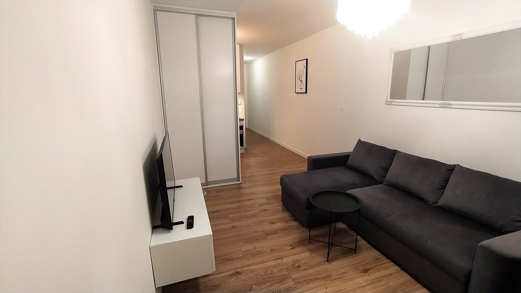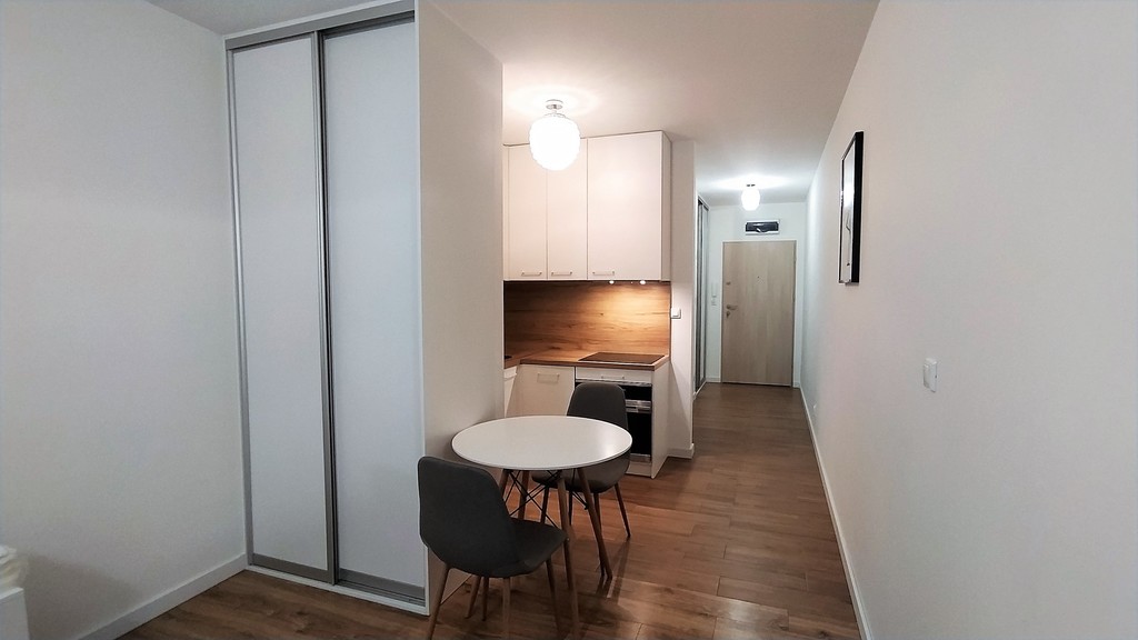 Apartament położony w bliskiej okolicy Centrum 5min na pieszo do Bramy Portowej na pograniczu Centrum, a Pomorzan. Bezpieczne zamknięte osiedle z całodobową ochroną. Po drugiej stronie ulicy osiedla pętla tramwajowa (kilka linii)... Bardzo dobre połączenie w każdym kierunku miasta. Mieszkanie prawie nowe, mało użytkowane . Salon z balkonem połączony z aneksem kuchennym. W całym mieszkaniu na podłodze wysokiej klasy panele, połączone z terakotą, ściany gładź tynkowa. Piękne nowoczesne wykończenie i wyposażenie. W salonie narożnik z funkcją spania , telewizor LCD, szafka TV. Eleganckie oświetlenie. Aneks kuchenny wyposażony w wysokiej klasy sprzęt AGD lodówka , piekarnik, okap, płyta indukcyjna, kuchenka oraz zmywarka.... Całość w zabudowie na wymiar z najwyższej jakości materiałów. Kabina prysznicowa, toaleta, umywalka z szafką, pralka, lustro. Przedpokój z szafą na wymiar, wieszak. Niskie koszty utrzymania czynsz około 250zł, ogrzewanie, prąd według zużycia.