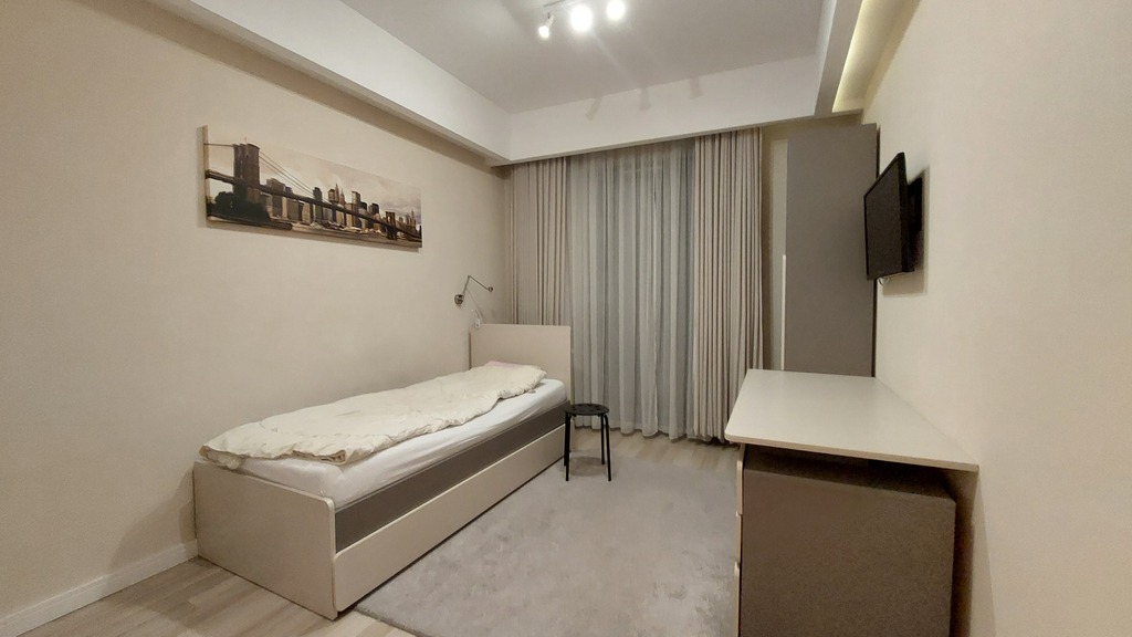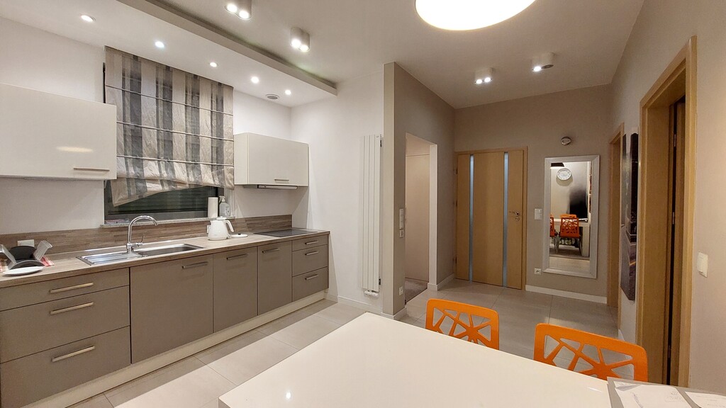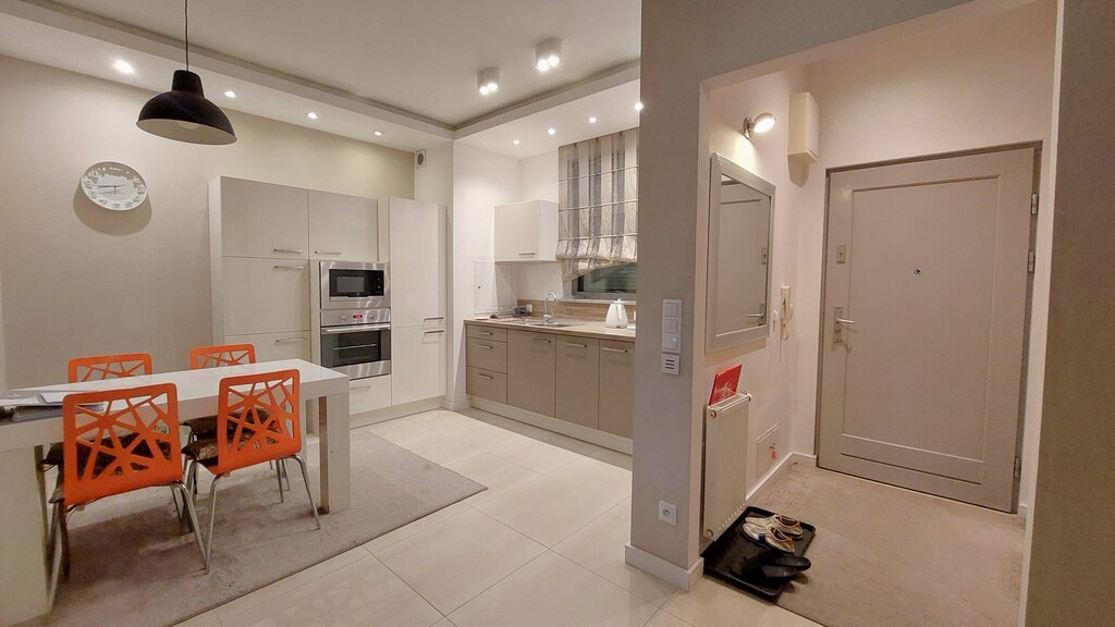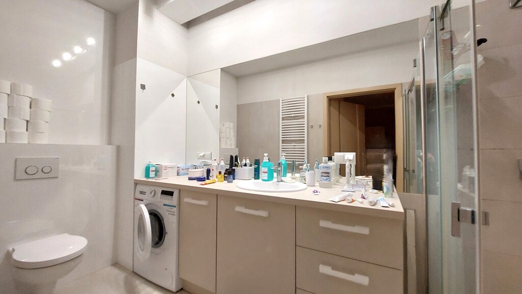 Całe mieszkanie urządzone bardzo ładnie i nowocześnie. Właściciel urządzali je pod siebie, co daje pewność co do użytych wysokiej jakości materiałów.
