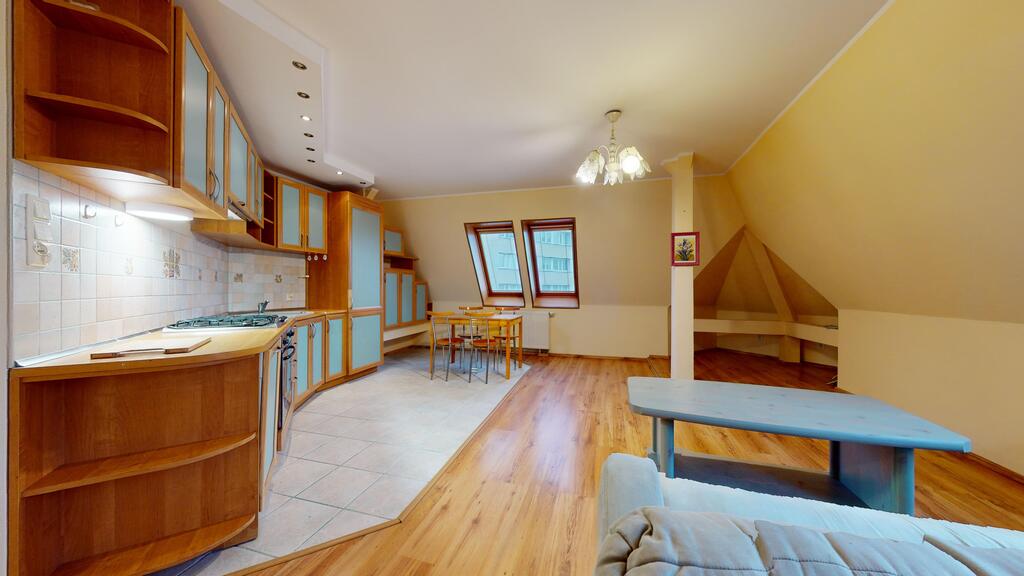 Poddasze w kamienicy 3 piętrowej, ale skosy są nieuciążliwe..