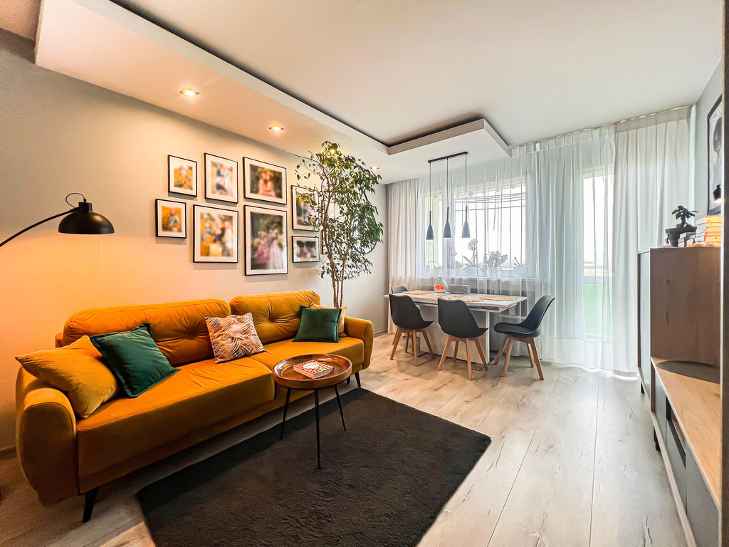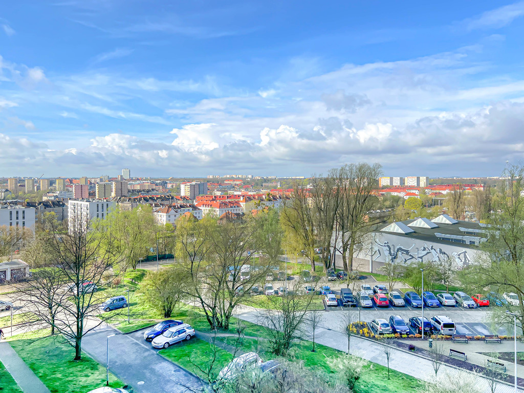 - pokój dzienny od strony zachodniej - panorama miasta i zachody słońca to dodatkowy atut mieszkania