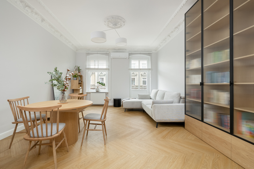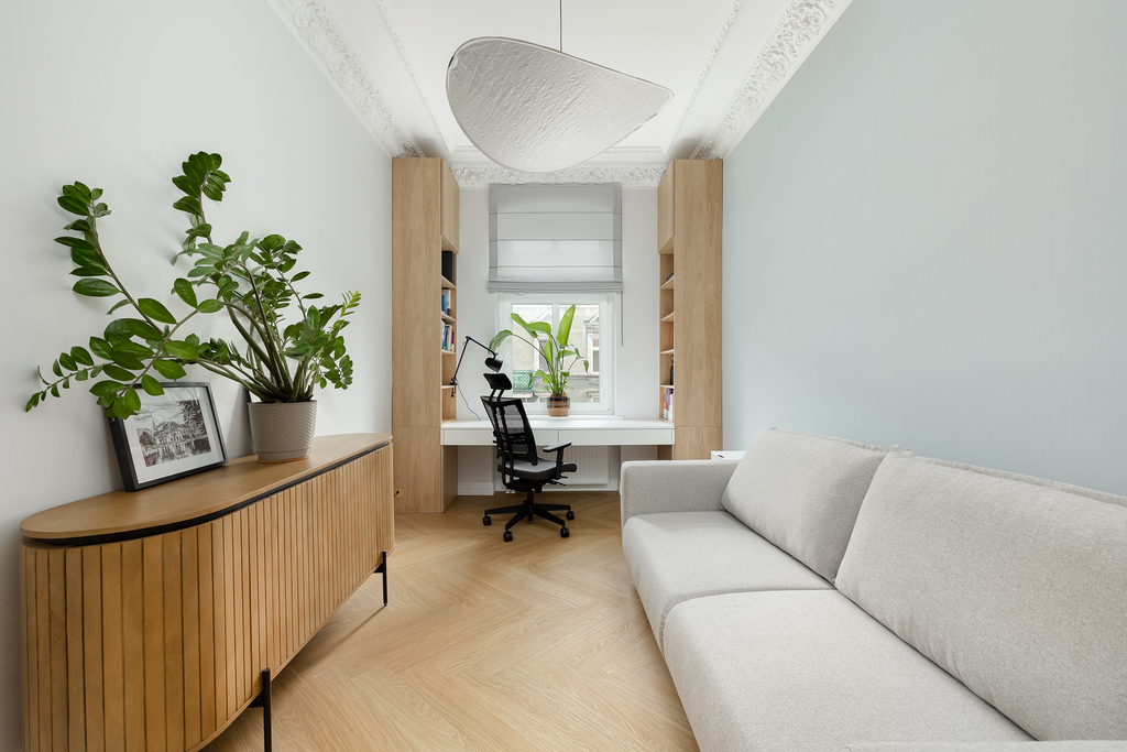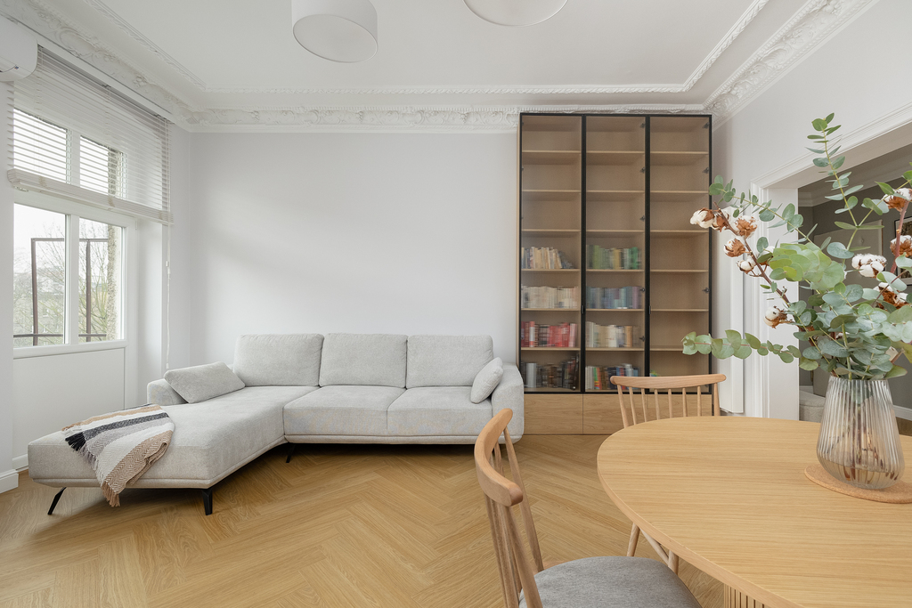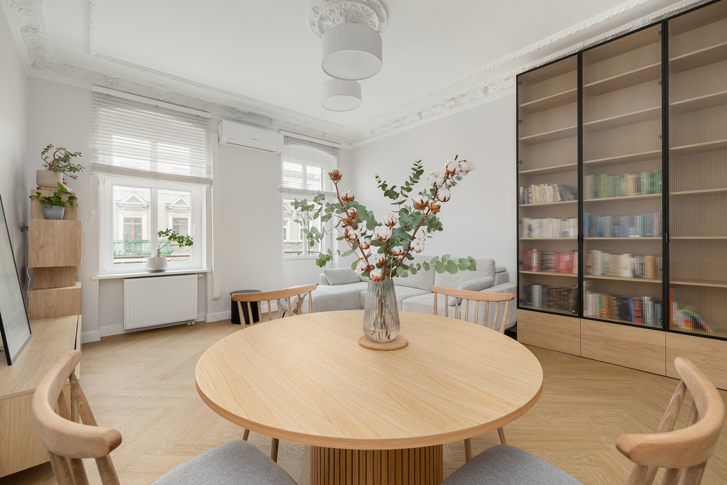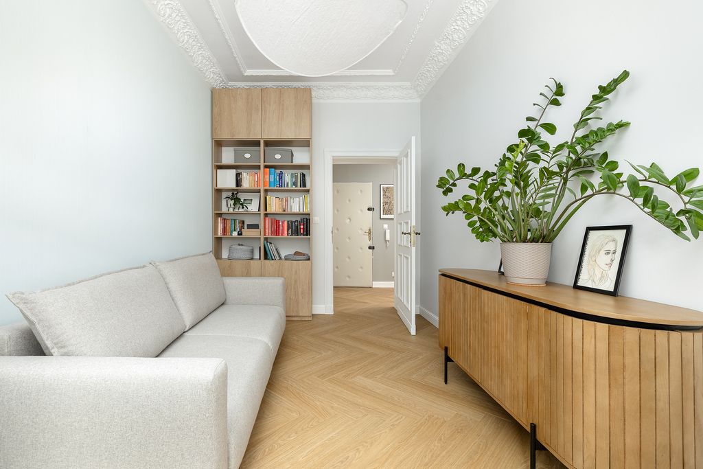 Modernizacja objęła: wymianę instalacji elektrycznej, instalacji wodno-kanalizacyjnej, wymianę okien na nowe 3-szybowe, odrestaurowanie sztukaterii w salonie oraz w jednym z pokoi. W salonie została zamontowana klimatyzacja. Wymieniono wszystkie grzejniki, schowano wszystkie rury od CO, odmalowano i odrestaurowano całą stolarkę drzwiową. W całym mieszkaniu zostały położone wysokiej jakości panele. Wymienione oświetlenie oraz zakupiono meble pod zabudowę (gabinet, salon oraz pomieszczenie gospodarcze).