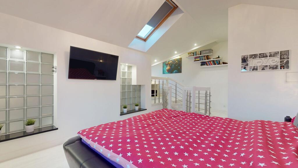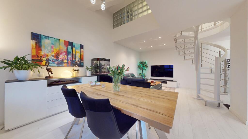 Dwa pokoje (salon i pokój na dole) z niespotykaną w bloku wysokością wynosząca 5 metrów.