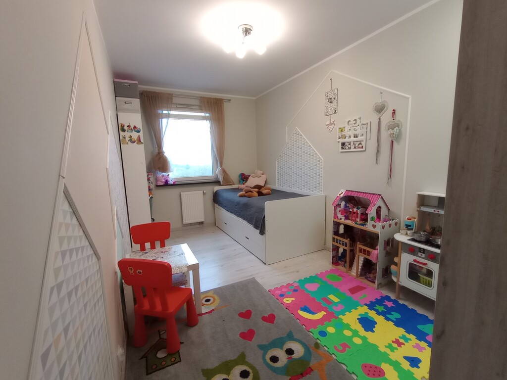 W skład mieszkania wchodzą : 3 pokoje 20/12/11,5m2, kuchnia ponad 6m2, łazienka z wc 4,5m2, oraz przedpokój ok 7m2. Na podłogach panele a w kuchni gres, ściany wygładzone i malowane, w łazience glazura - wanna. Zabodowa kuchenna na wymiar wraz ze sprzętem AGD oraz wyposażenie łazienki pozostają w cenie. W każdym pomieszczeniu moskitiery w oknach wykonane na zamówienie . W sypialniach i hollu szafy garderobiane również w cenie.