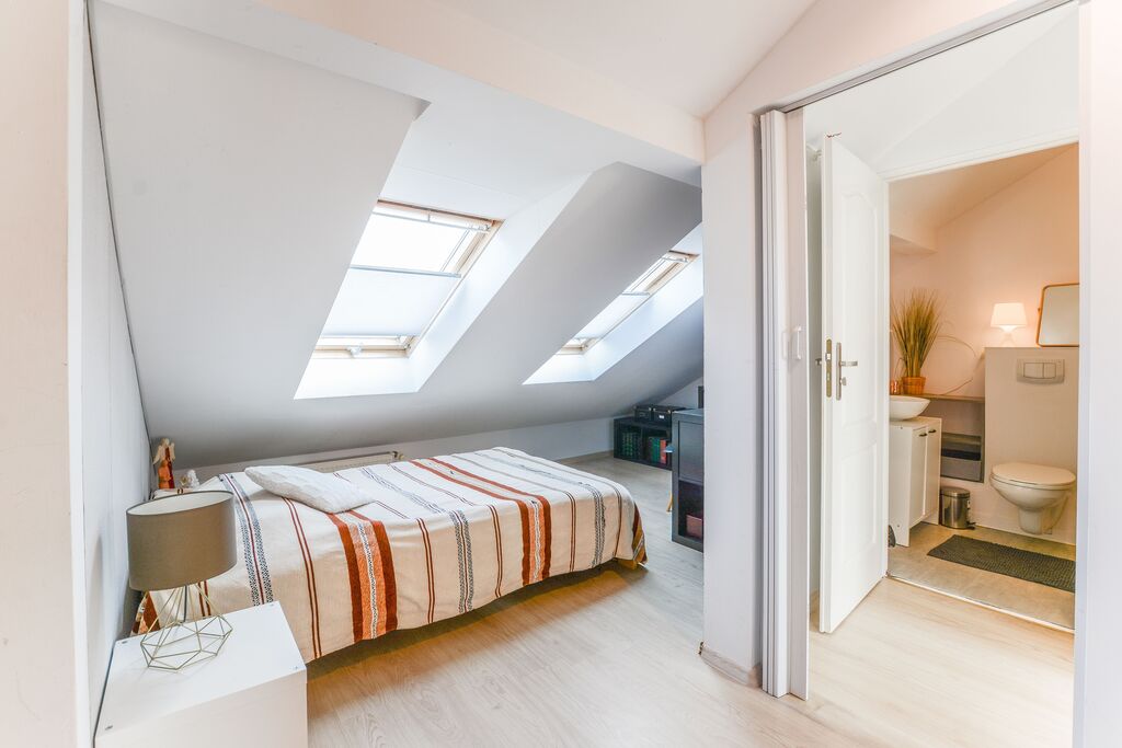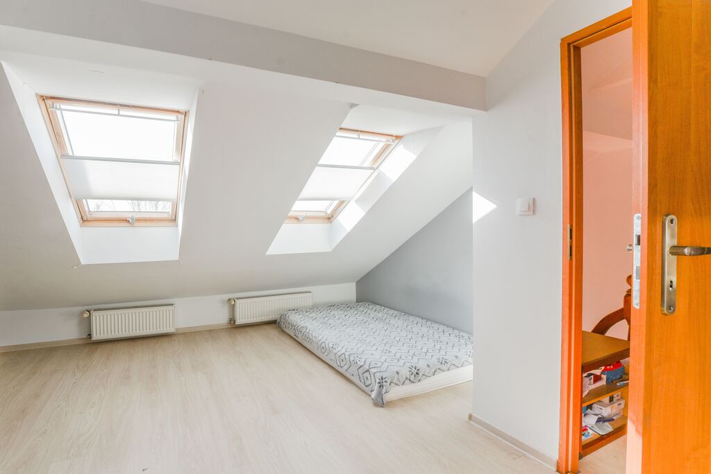 ➡️ Poziom II (pomieszczenie przynależne - poddasze: 21,34 m²): Dwie przytulne sypialnie, korytarz, druga łazienka z prysznicem i WC.