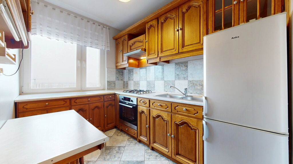 Mieszkanie jest ciepłe i jasne, gotowe do wprowadzenia. Widoczne na zdjęciach może pozostać. Podłogi wyłożone panelami, ściany gładkie malowane i tapetowane. Kuchnia zabudowana meblami z drewna. Łazienka po remoncie z dużym prysznicem, wc osobno. W sypialniach dwie duże szafy. Ogrzewanie i woda z sieci miejskiej, gaz w czynszu.