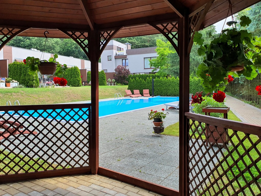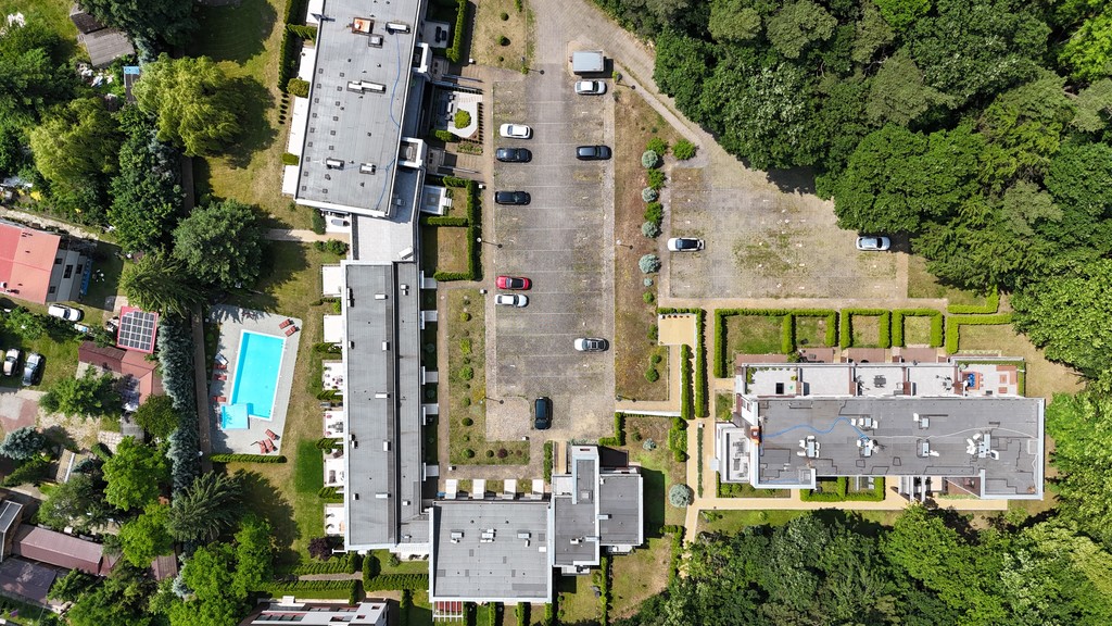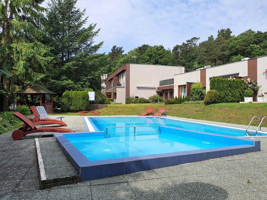 Na terenie zamkniętego ośrodka (brama na pilota, monitoring) znajduje się ogólnodostępny basen dla dorosłych oraz drugi – mniejszy – dla dzieci. Woda jest podgrzewana non stop w okresie od 1 maja do końca września. Kilka kroków dalej znajduje się także plac zabaw dla najmłodszych. Dorośli mogą korzystać z sauny oraz pralni, które podobnie jak basen są w cenie miesięcznego czynszu za apartament. Utrzymaniem części wspólnych zajmuje się firma zewnętrzna.