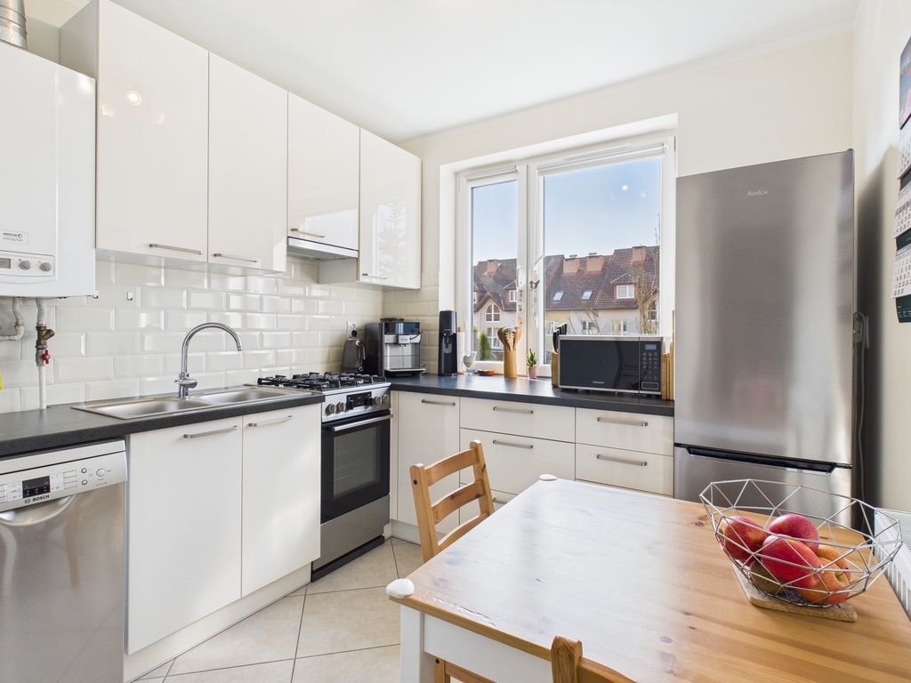 Mieszkanie przeszło generalny remont w 2021 r., podczas którego było malowane, wymieniane były podłogi, robiona nowa kuchnia oraz łazienka, a także wstawiane nowe drzwi wewnętrzne, nowe grzejniki, a także nowe szafy w zabudowie na wymiar.