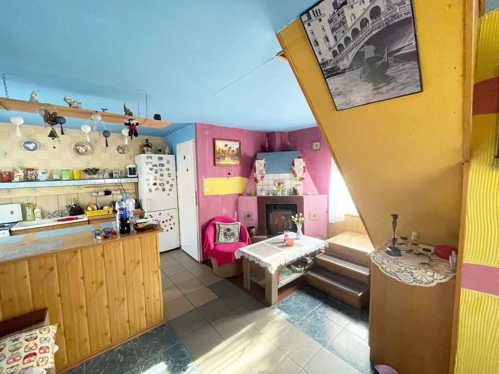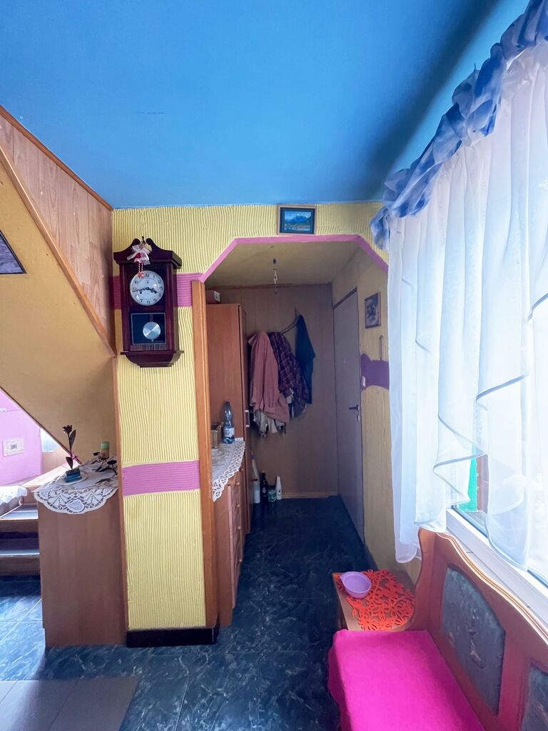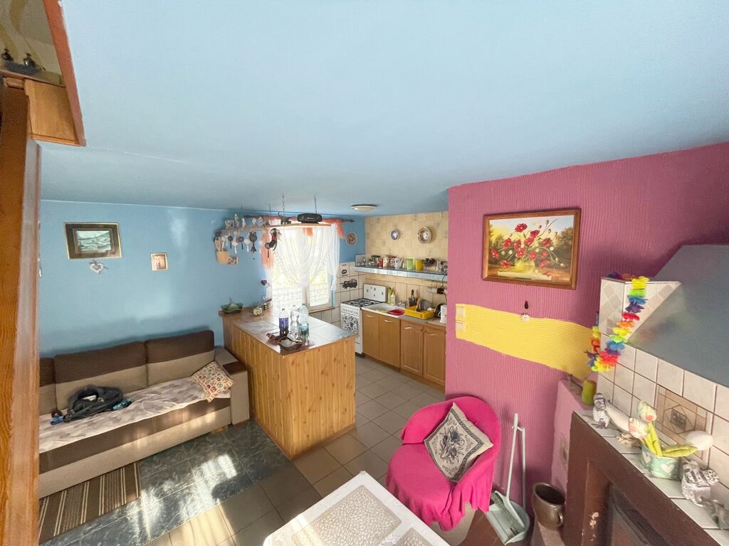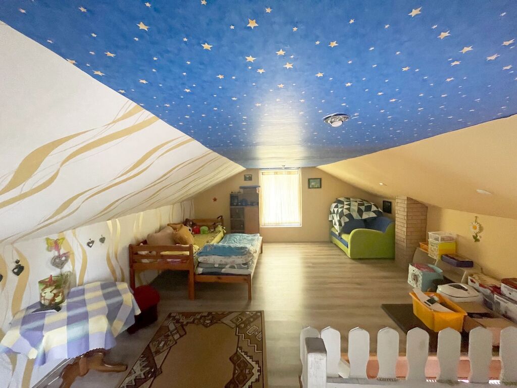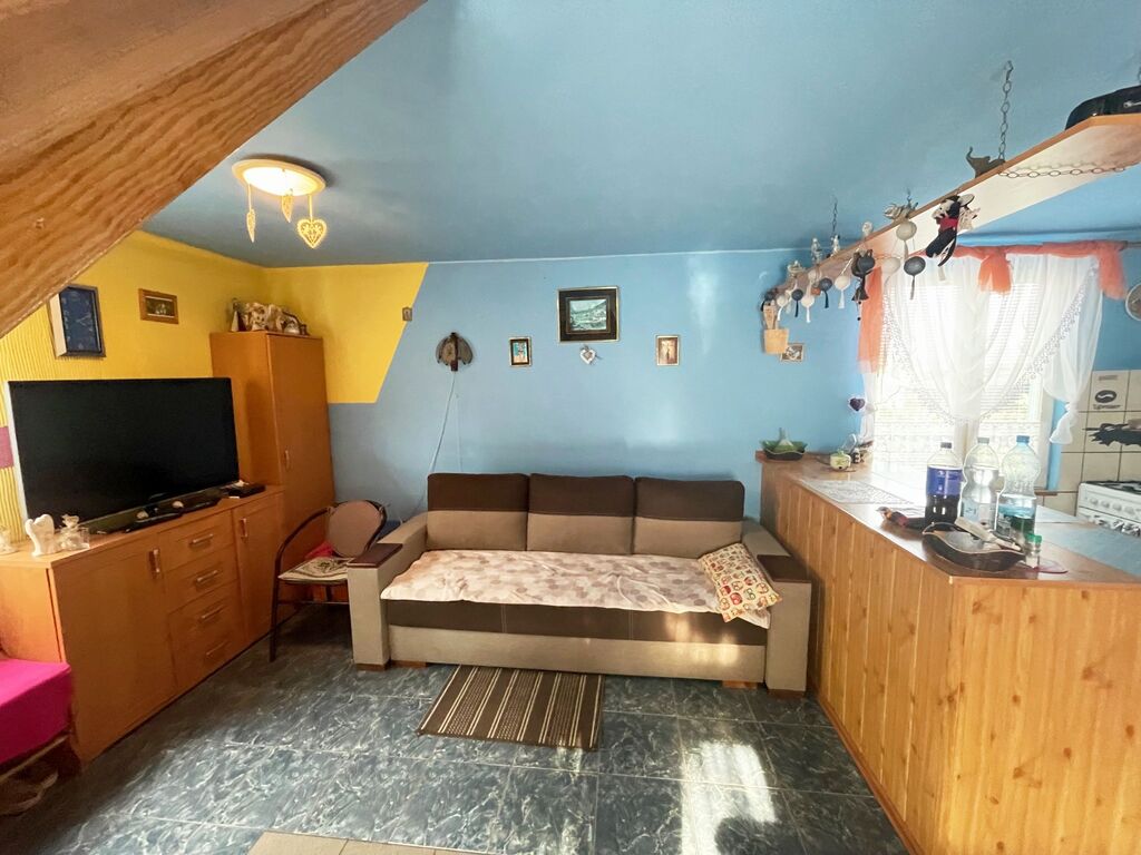 W pomieszczeniu zamontowany kominek . Na piętrze pomieszczenie o pow. ok. 30 m2 po podłodze. W tym pomieszczeniu znajduje się sypialnia.