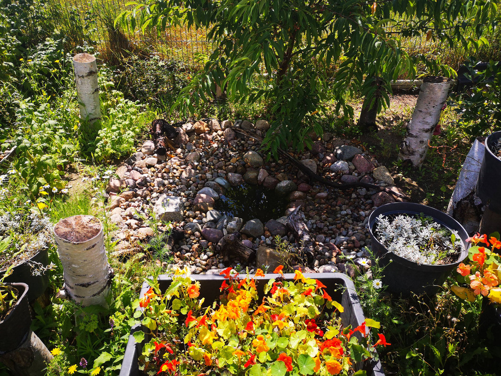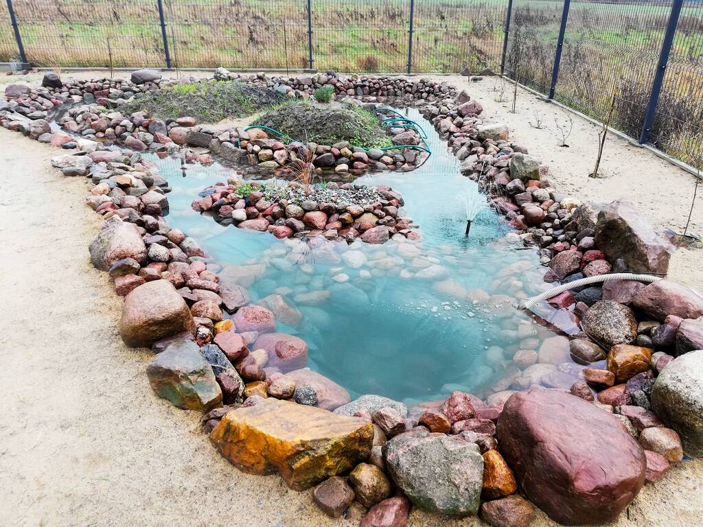 Ogród z nasadzeniami, oczkami wodnymi oraz strefą rekraacyjną.