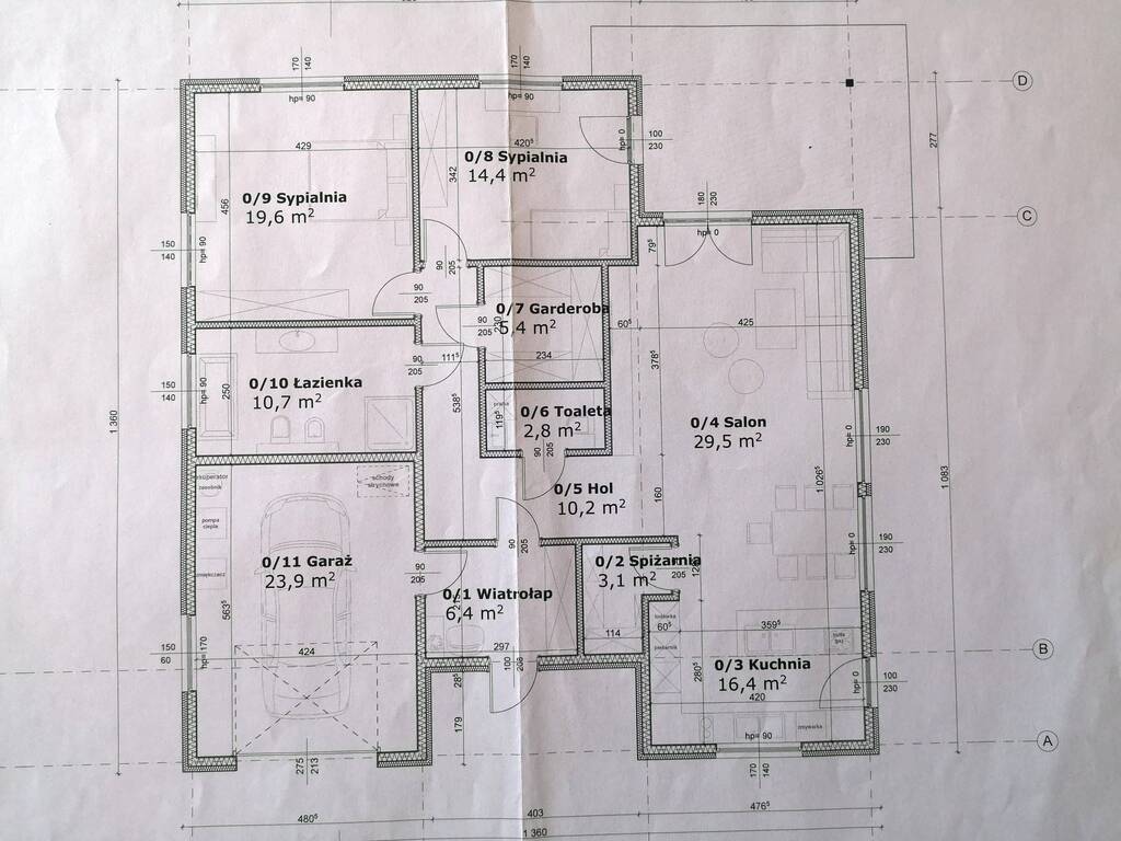 - na podłodze deska we wszystkich pomieszczeniach oprócz garażu, łazienki i WC.
