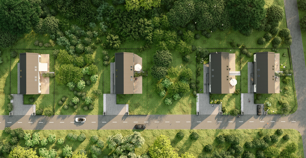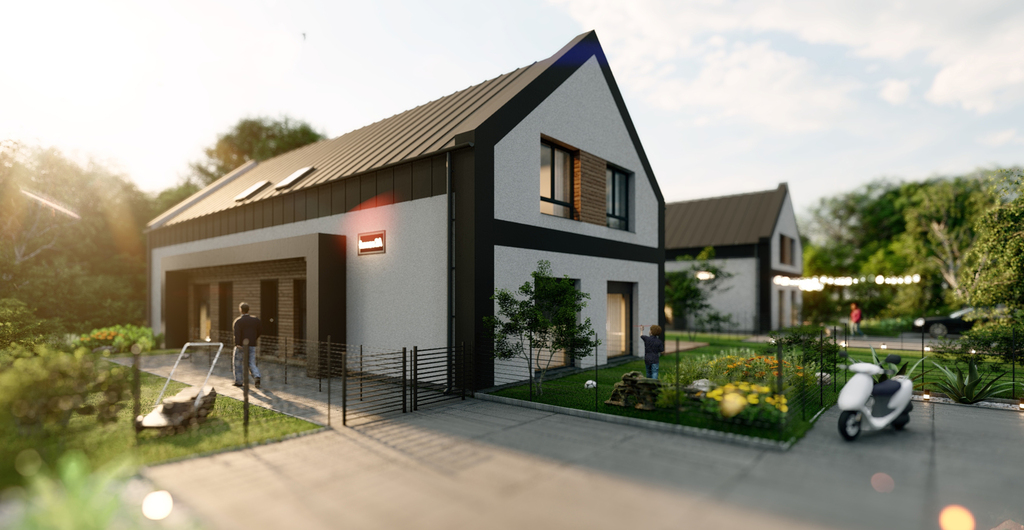 Domy wyposażone są w nowoczesne systemy takie jak ogrzewanie podłogowe w całym domu oraz pompy ciepła.