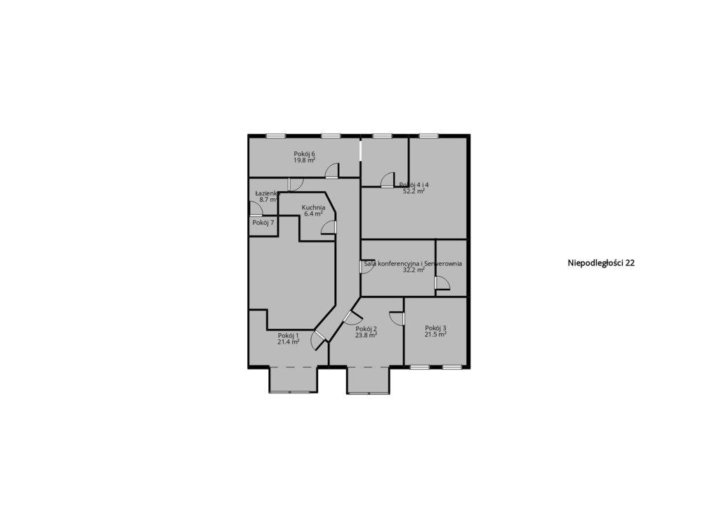 Na wynajmowaną nieruchomość składają się : 7 pomieszczeń biurowych o różnej wielkości, sala konferencyjna, serwerownia, pomieszczenie socjalne - kuchnia, łazienka z natryskiem i wc.