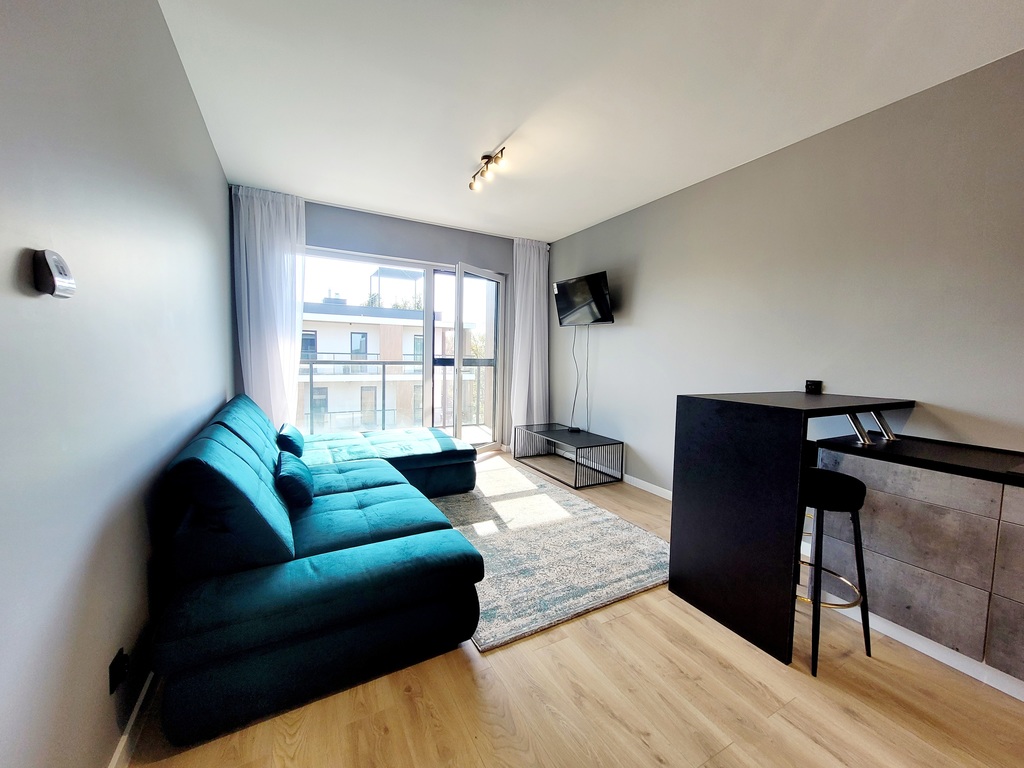 Apartament rozkładowy, świetnie doświetlony, wykończony w nowoczesnym stylu, z wysokiej jakości materiałów i w pełni umeblowany.