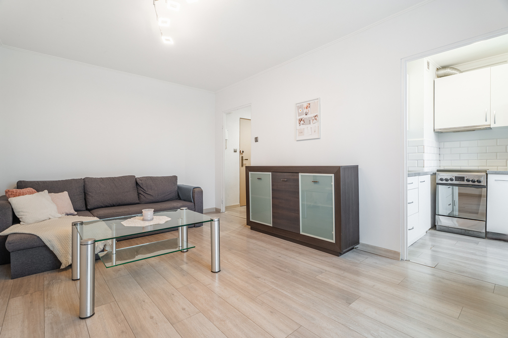 Lokal jest gotowy do zamieszkania – na podłogach panele, okna PCV, w łazience glazura i terakota. Do mieszkania przynależy piwnica, co zapewnia dodatkową przestrzeń do przechowywania.