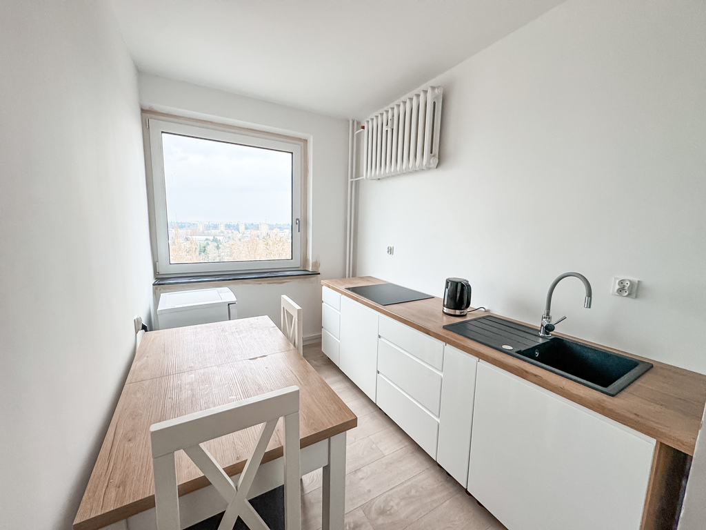 Oferujemy na sprzedaż przestronne, słoneczne mieszkanie o powierzchni niecałych 43m2, położone na 8. piętrze w dziesięciopiętrowym bloku z 1980 roku. Mieszkanie zostało całkowicie wyremontowane. Przestronny układ obejmuje dwa pokoje, oddzielną kuchnię oraz łazienkę i osobną toaletą.