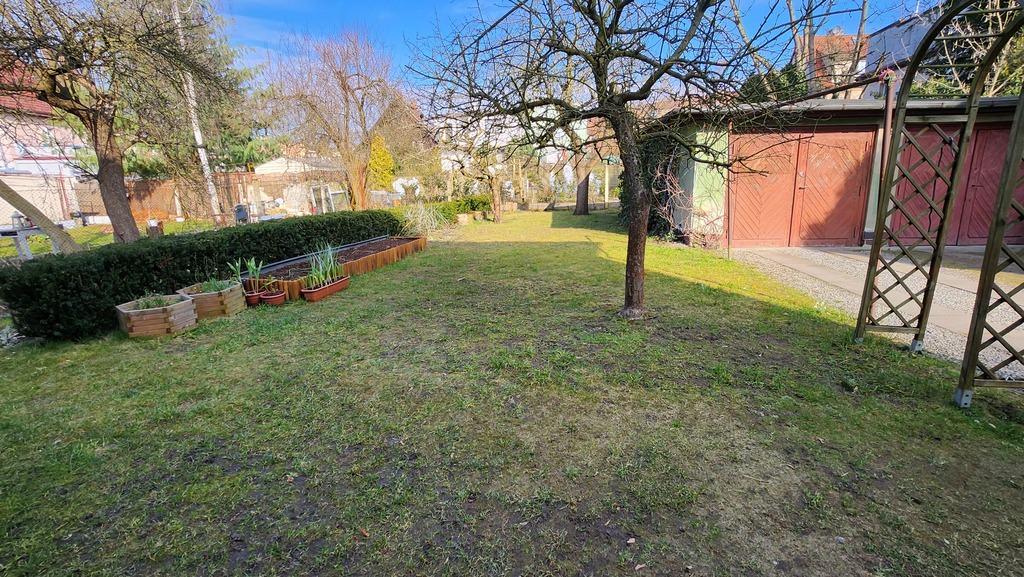 Do mieszkania na zasadzie wyłącznego korzystania przynależy część ogródka, 2 piwnice oraz część strychu.