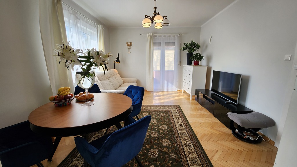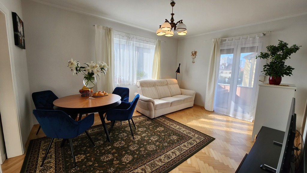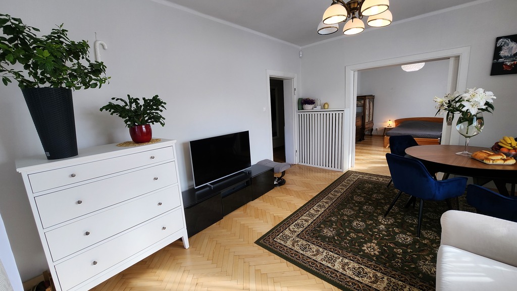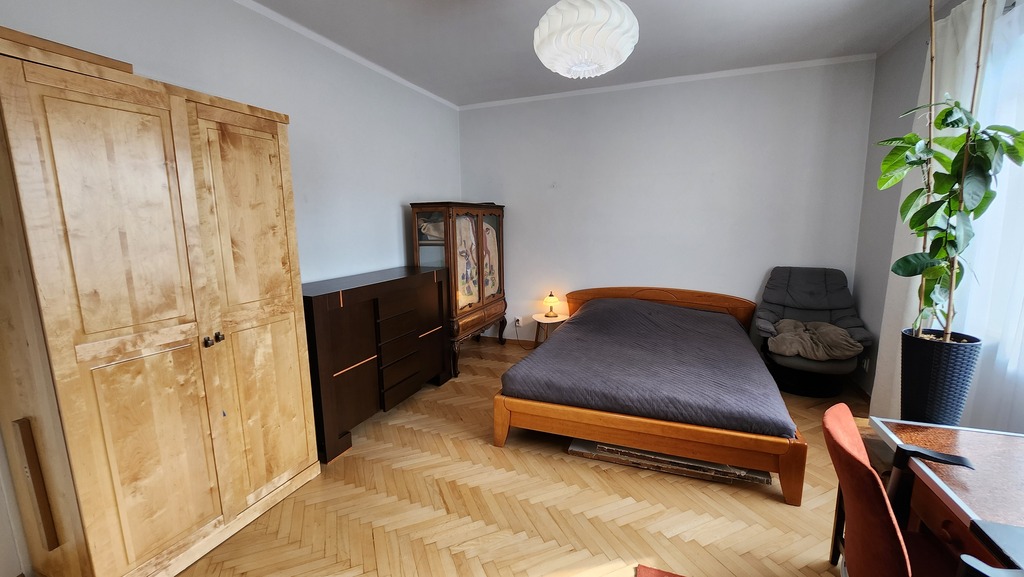 Mieszkanie przestronne, bardzo słoneczne, w pełni rozkładowe, częściowo w układzie amfilady. W pokojach na podłodze dobrze utrzymany parkiet.