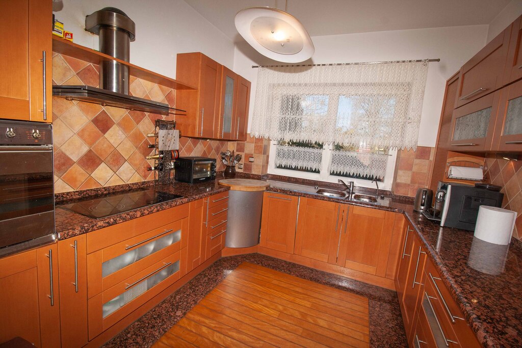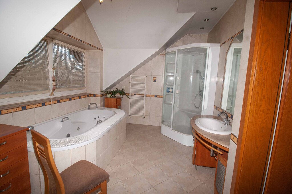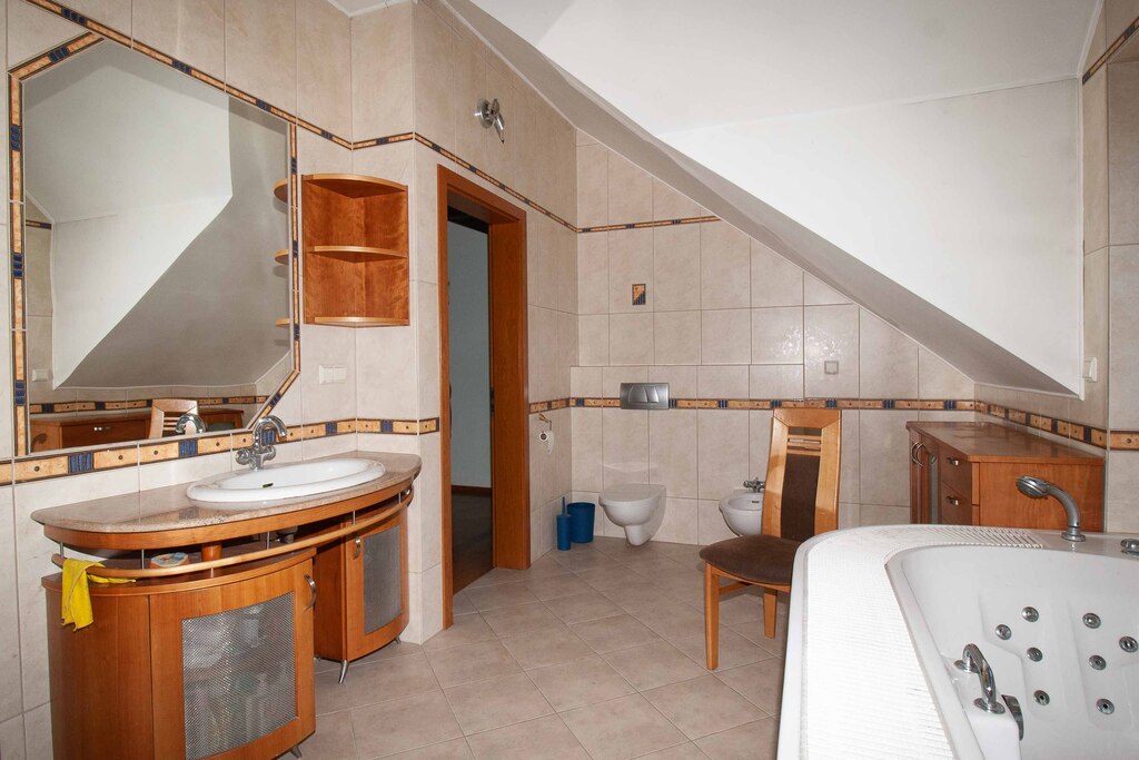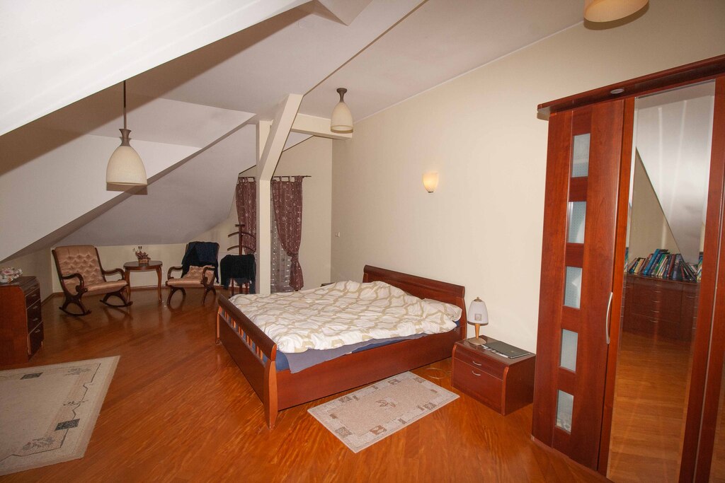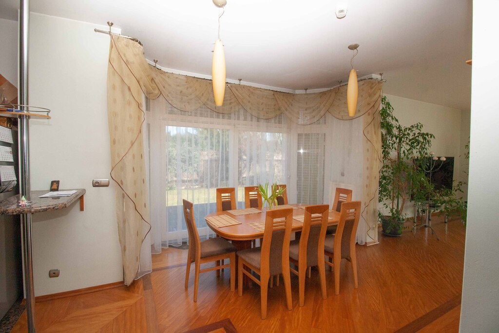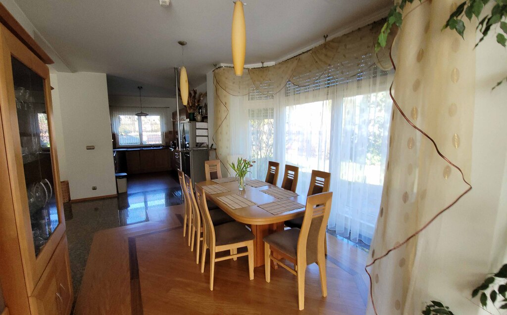 Podłogi w domu z drewna egzotycznego. Wysokość pomieszczeń 290 cm daje poczucie większej przestrzeni. Ściany gładzone i malowane. Kuchnia w pełni umeblowana i wyposażona, blaty z granitu, ogrzewanie podłogowe.
