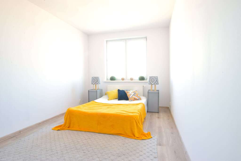 Mieszkanie jest świeżo po malowaniu.