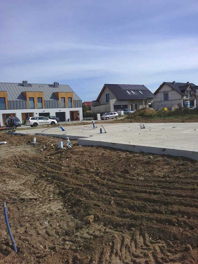 Na terenie są już przyłączone media i wylana płyta fundamentowa.
