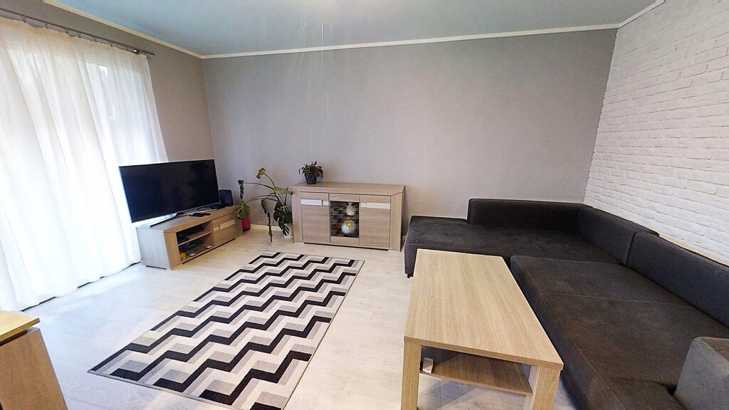 Duży salon z aneksem kuchennym, z wyjściem na ogródek od strony południowej. Mniejszy pokój położony po przeciwnej stronie, ustawny. Łazienka połączona z WC, z prysznicem i miejscem na pralkę. Ogrzewanie i ciepła woda z lokalnego węzła cieplnego (miejskie). Czynsz ok. 530zł (łącznie z funduszem remontowym). Mieszkanie ładnie urządzone i utrzymane, dobrze doświetlone, przestronne.