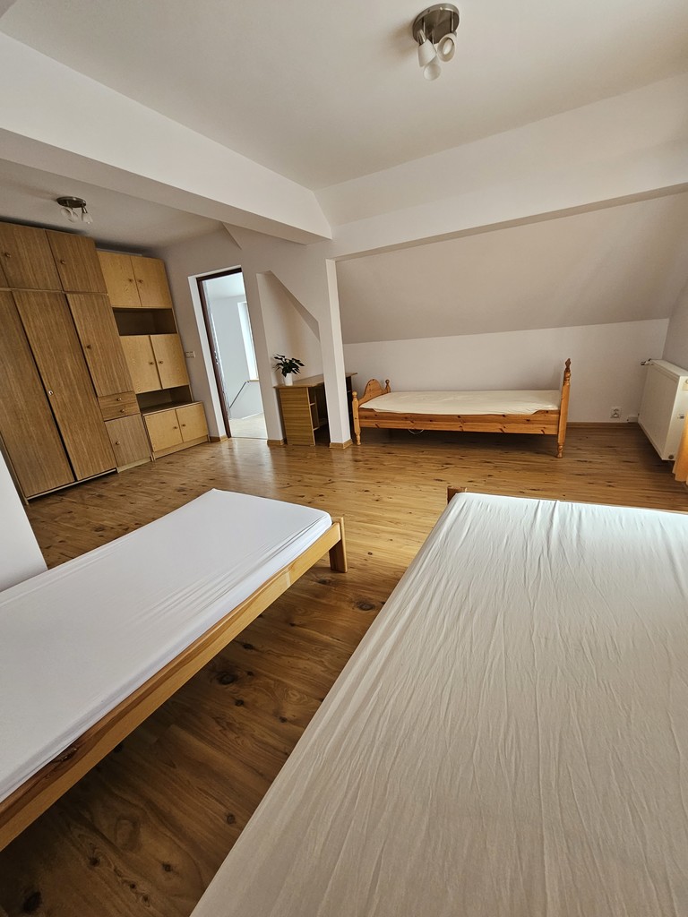 PIĘTRO -trzy pokoje z jednego wyjście na balkon, łazienka.