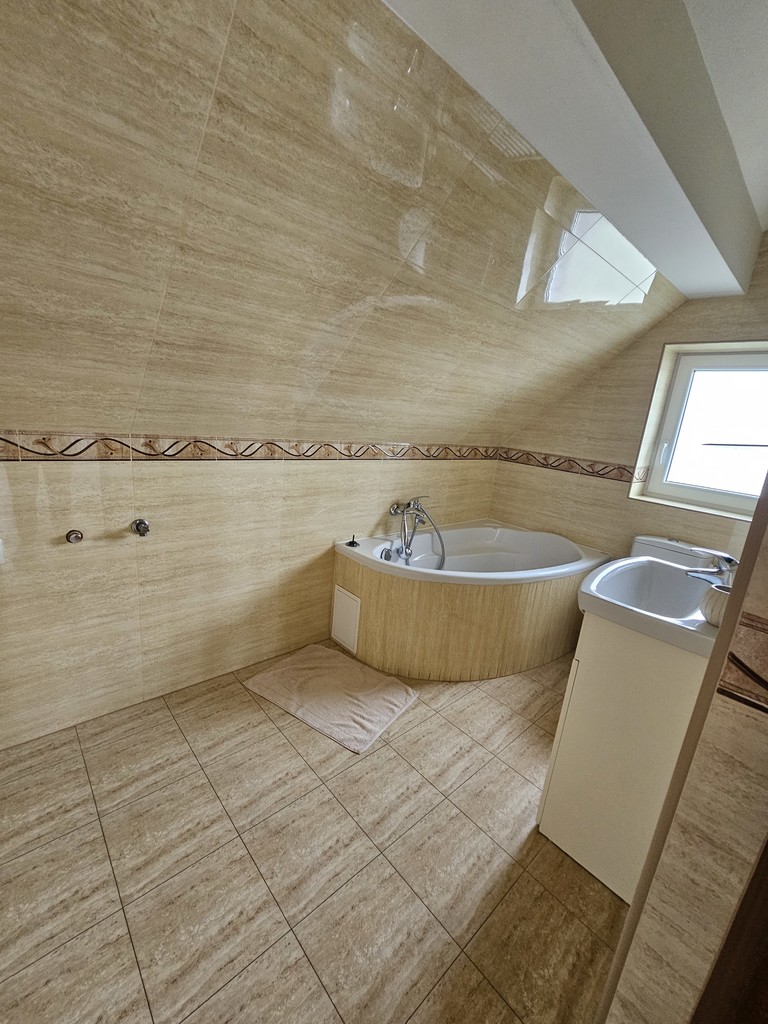DRUGIE  PIĘTRO -salon ,kuchnia, łazienka, garderoba Umeblowane .Dom jest podpiwniczony -pralnia ,suszarnia.