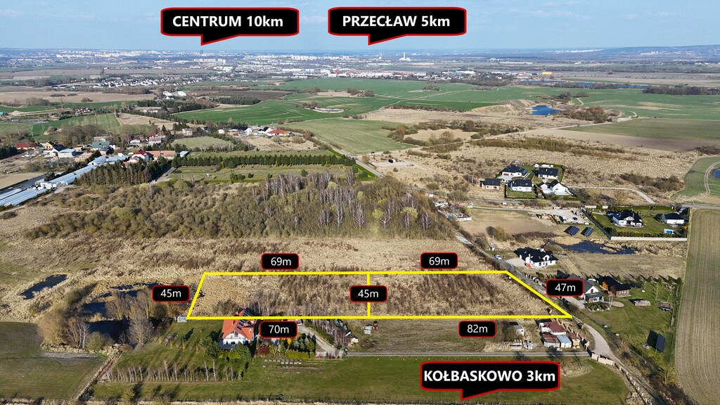 Działki położone są w cichym i malowniczym zakątku, lecz zapewniają błyskawiczny dojazd do A6 (Kołbaskowo, 3km) lub do centrum Szczecina (10km). Przystanek autobusowy jest zaledwie 500m dalej (6 minut pieszo).