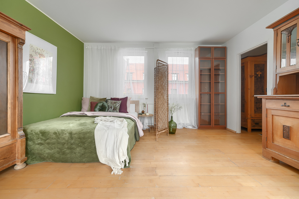 - pokój z balkonem francuskim 23,2m2 z oknami na wschód i zachód