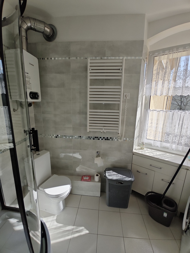 Łazienka: Wyposażona w kabinę prysznicową i WC, przemyślana pod kątem komfortu użytkowania.