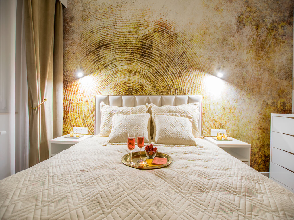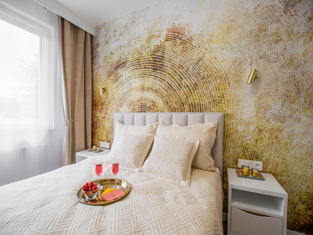 Sypialnia 1 - duże łóżko sypialniane, 2 szafki nocne, komoda,