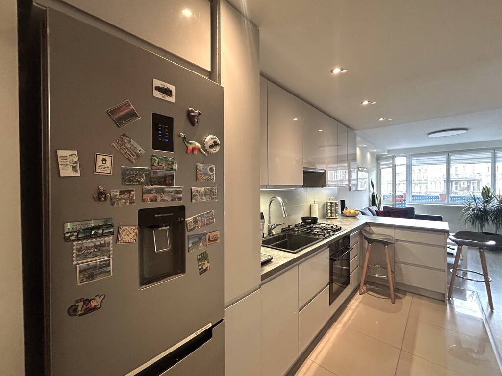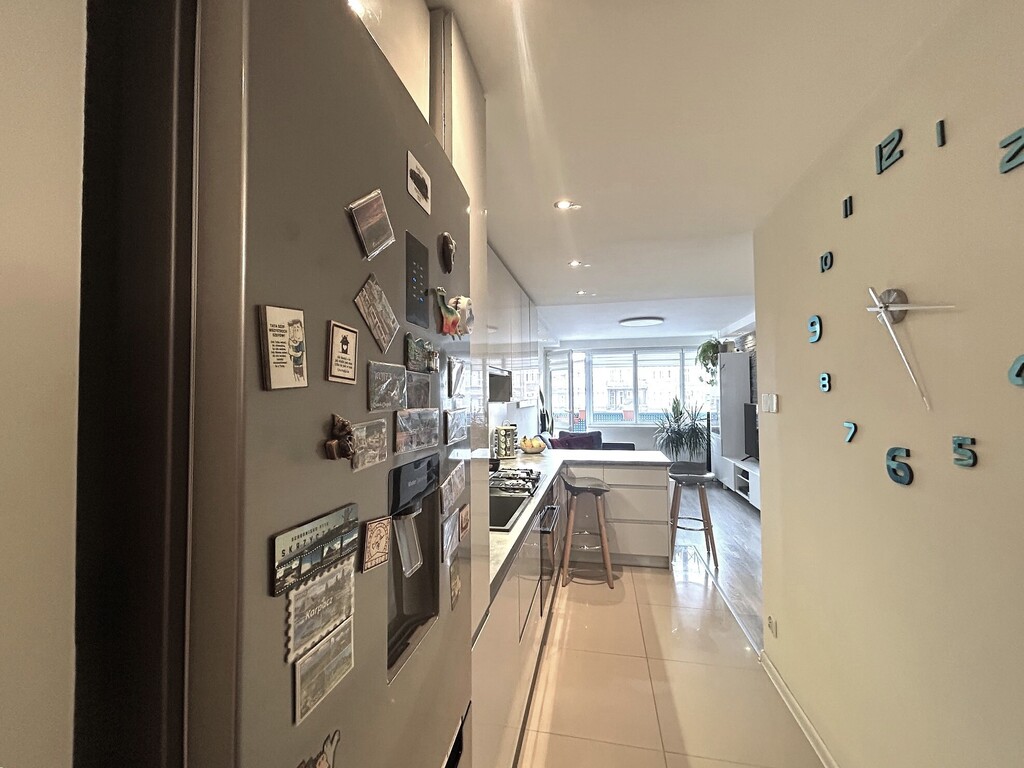 - połączony z pokojem dziennym aneks kuchenny (meble w zabudowie oraz sprzęt mają około roku) wyposażony w zmywarkę, gazowa płytę do gotowania, pochłaniacz, piekarnik, lodówkę z zamrażarką