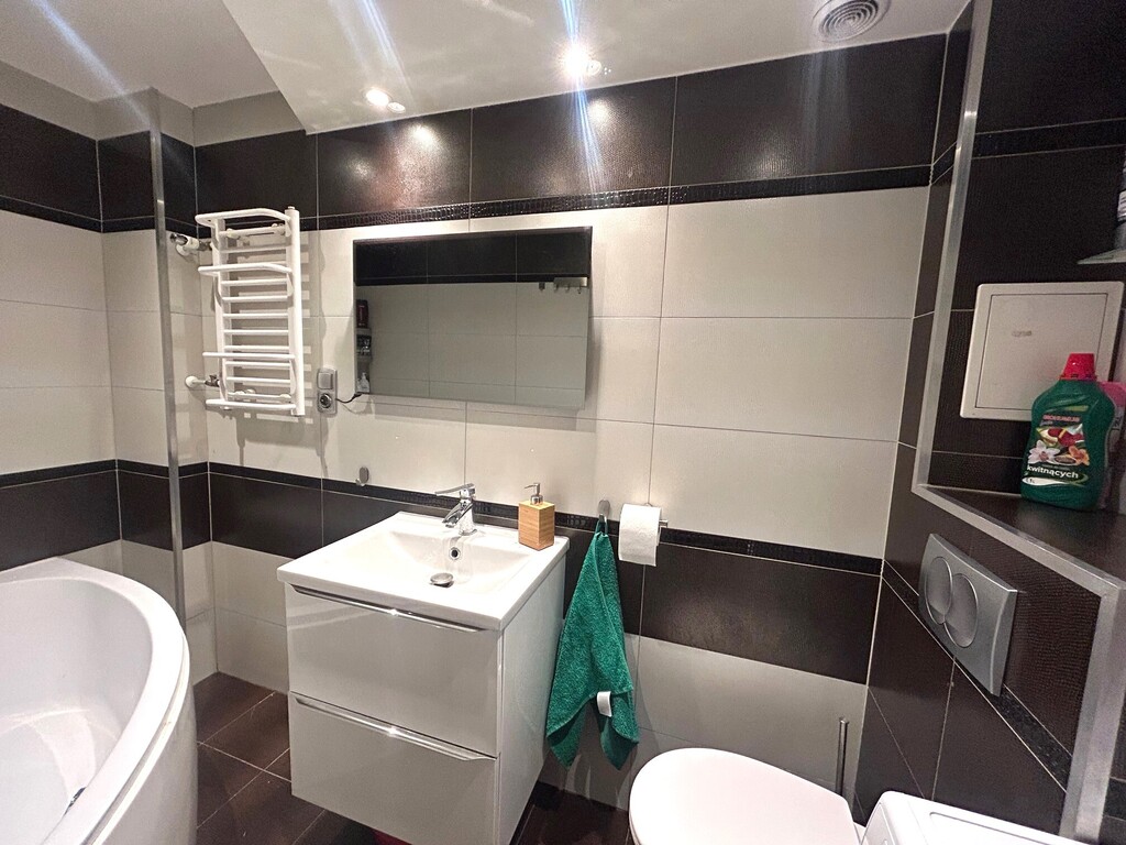 W mieszkaniu został zainstalowany system SMART HOME, umożliwiający zdalne sterowanie (np. z telefonu komórkowego) nie tylko oświetleniem, ale również ogrzewaniem.