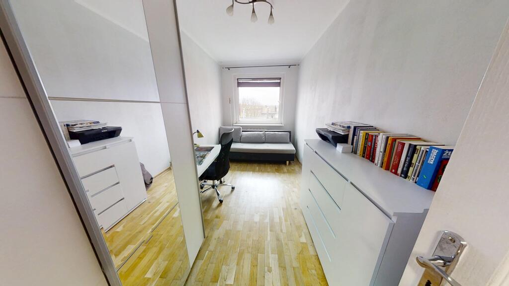 Do sprzedaży duże, 3-pokojowe mieszkanie położone na czwartym piętrze niskiego, ocieplonego budynku, z dala od ruchliwej ulicy (budek znajduje się w głębi osiedla). Mieszkanie rozkładowe, składające się z dużego pokoju (z wyjściem na duży balkon od strony zachodniej), dwóch mniejszych pokoi, kuchni, łazienki, WC oraz "podwójnego" przedpokoju. Pokoje ustawne i dobrze doświetlone.
