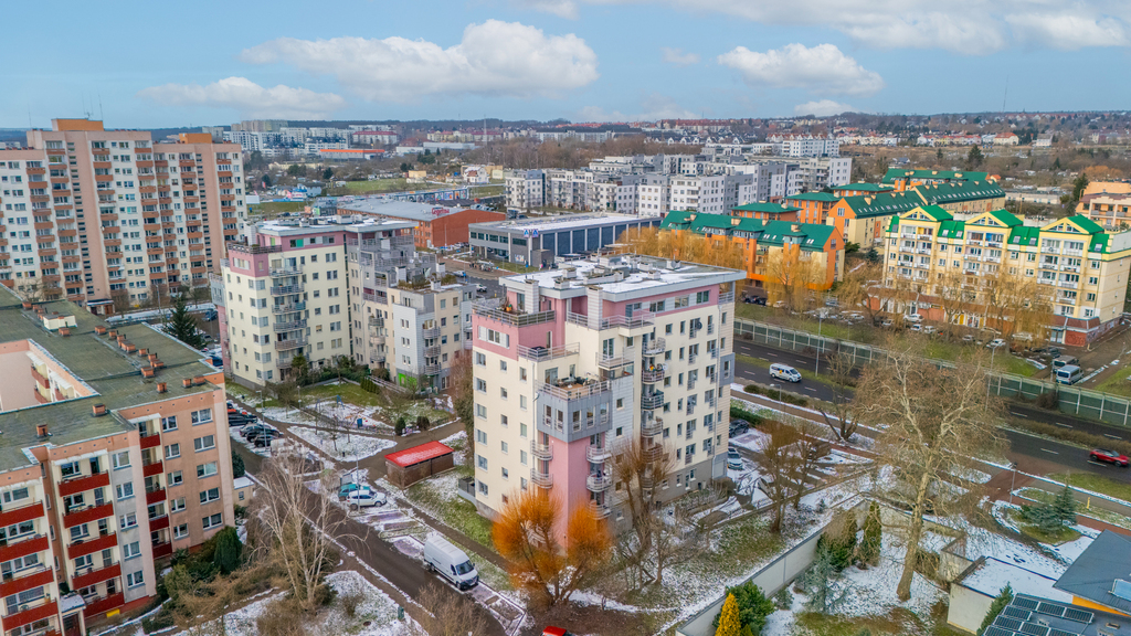 Dogodna lokalizacja - spokojna okolica, jednocześnie z bardzo dobrym dojazdem do centrum miasta. W pobliżu wiele sklepów i punktów usługowych (CH Stara Cegielnia, Lidl, Biedronka, Mrówka, CH Wilcza, McDonald, przedszkole, szkoła, boiska, punkty gastronomiczne, kościół, itp.). Kilometr dzieli nas od Stawu Brodowskiego a niespełna dwa kilometry od Parku Kasprowicza. W odległości 50 metrów od budynku przystanek komunikacji miejskiej linii 69,80,523. Dojazd samochodem do ścisłego centrum miasta zajmuje 10 minut.
