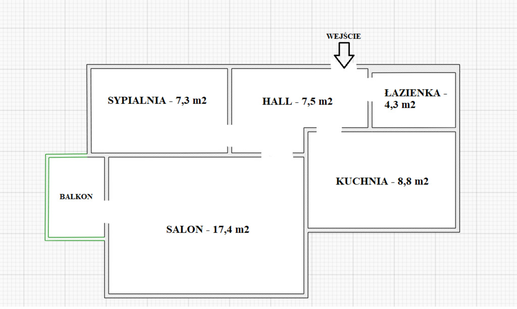 Lokal o powierzchni całkowitej 45,3 m2 składa się z: