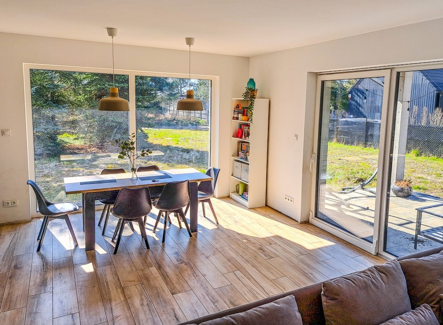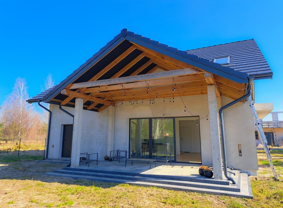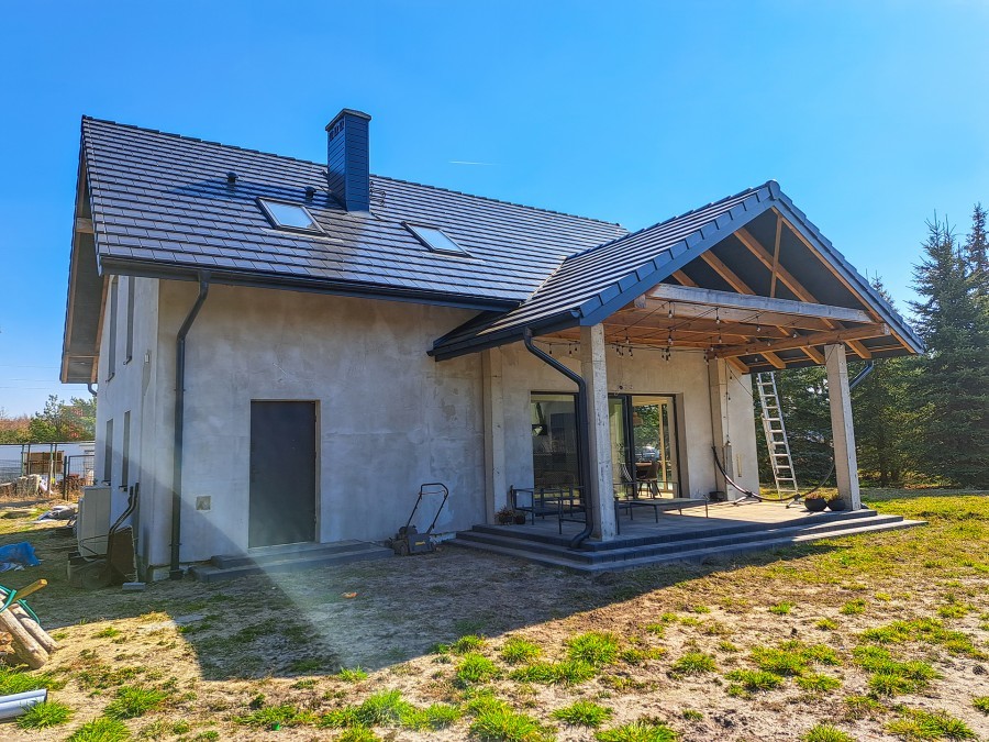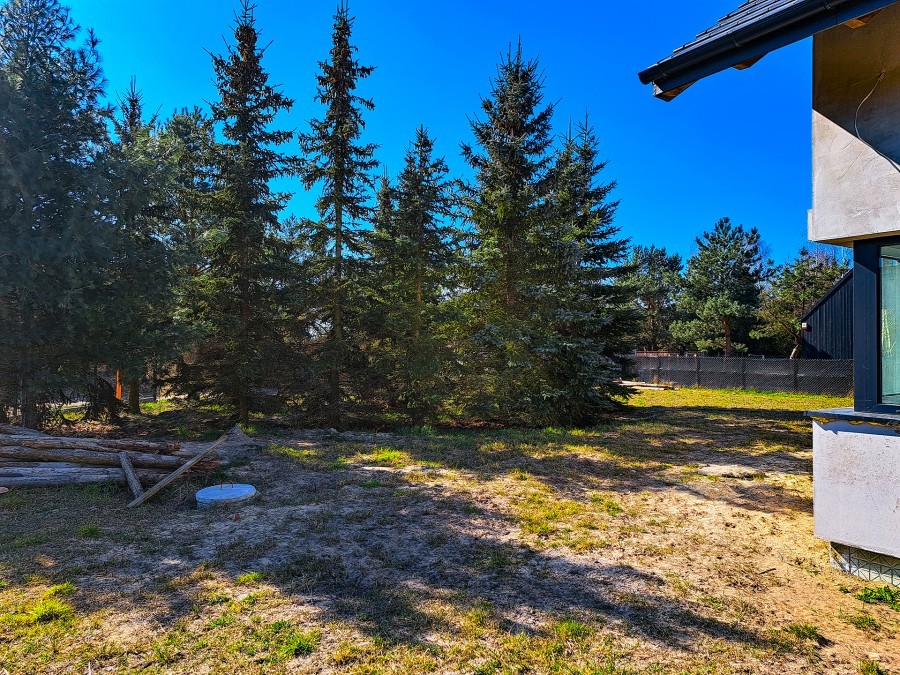 Dom znajduje się na działce o powierzchni 1000m2 z uroczymi sosnowymi drzewami, które nadadzą klimatu w przyszłym ogrodzie