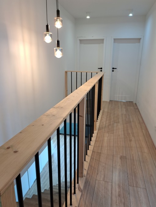 Na piętrze znajdują się 3 sypialnie , 2 garderoby ,duża łazienka , pralnia , hol .Ponad to sypialnie na piętrze posiadają balkony .