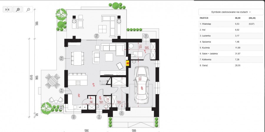 Na parterze przestronny salon połączony z jadalnią ( ponad 31m2 ) , kuchnia (11m2 ) otwarta na jadalnię plus spiżarnia , toaleta oraz hol z którego mamy wejście do garażu .