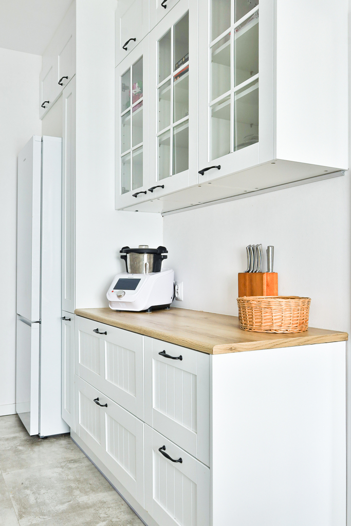 · jasna kuchnia z meblami w zabudowie kuchennej