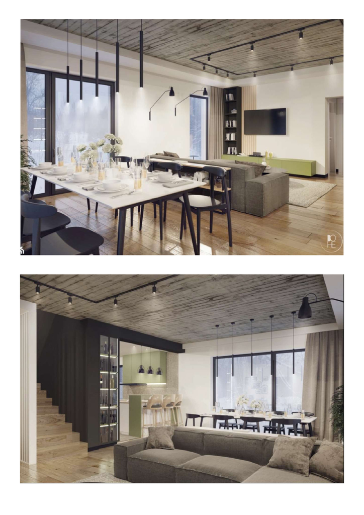 - Salon z aneksem kuchennym (35,50 m²) z wyjściem na taras
