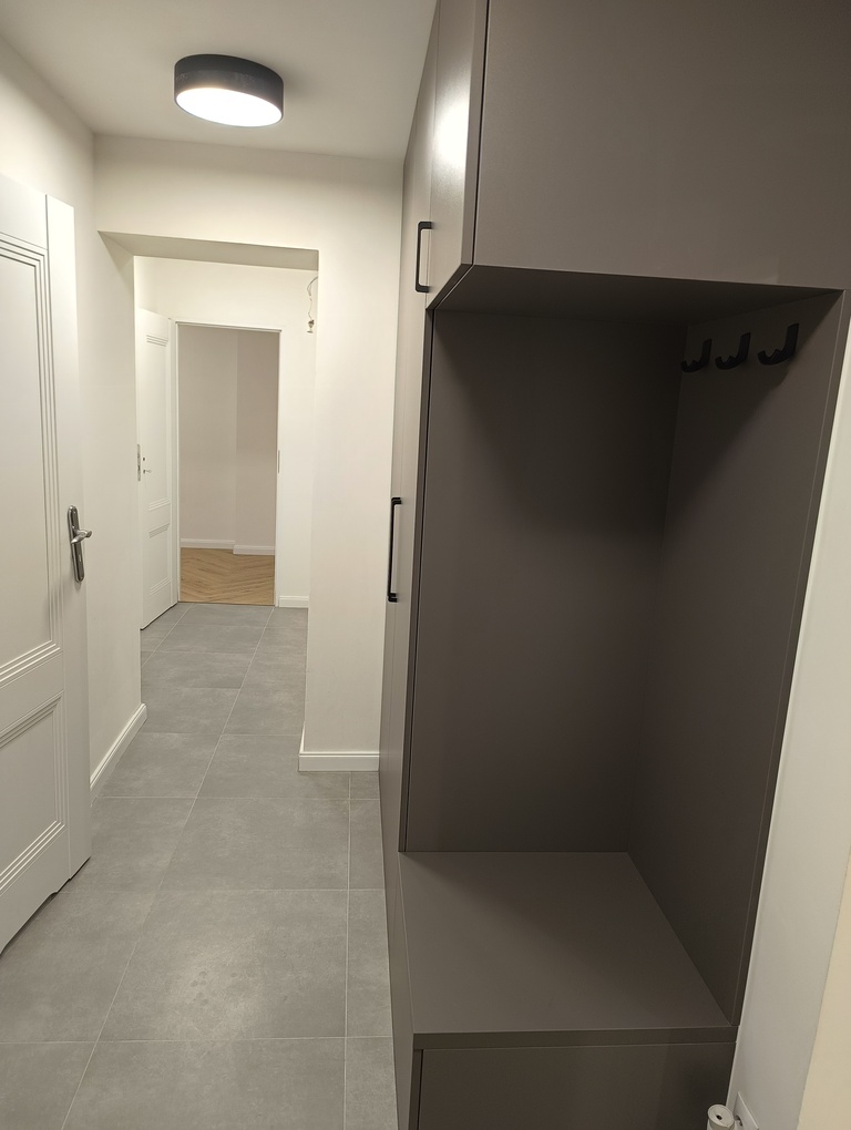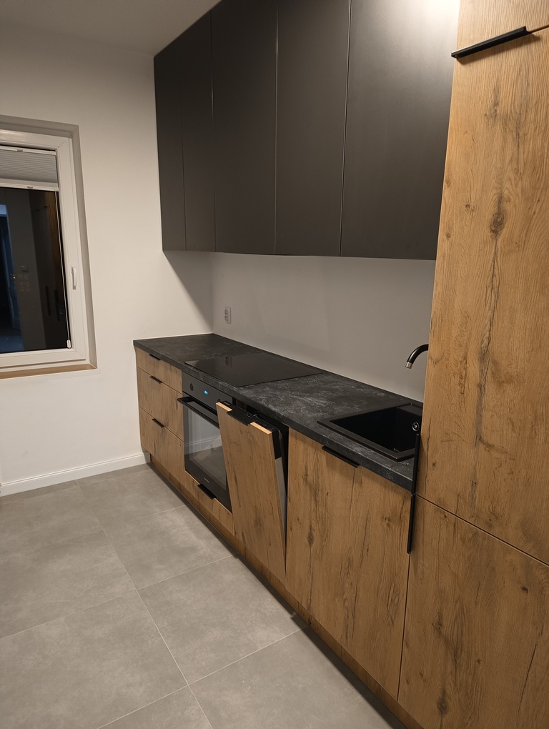 Lokal ma łączną powierzchnię 64,38 m2 zaaranżowaną na 3 pokoje, garderobę, przedpokój z pojemną szafą, osobną kuchnię oraz łazienkę wraz z WC. Jest po gruntownym remoncie. Na podłogach wysokiej jakości panele w jodełkę. Nowiutka kuchnia będzie wyposażona w: piekarnik, płytę, okap, zmywarkę w zabudowie, liczne szafki, szuflady i schowki. Komfortowa łazienka wyposażona jest w prysznic, sedes z geberitem, umywalkę oraz szafki w zabudowie. Obszerny salon połączony jest z 4 metrową garderobą. Okolica jest bardzo przyjemna, przed oknami znajduje się mały plac zabaw. Dzięki dwustronnej ekspozycji mieszkanie jest dobrze doświetlone, jasne i przestronne. Do nieruchomości przynależy piwnica oraz miejsce parkingowe w zamkniętej strefie osiedla pod samym budynkiem (parking wyłącznie dla właścicieli). Mieszkanie jest własnościowe, posiada Księgę Wieczystą, więc jest możliwość posiłkowania się przy zakupie kredytem.
