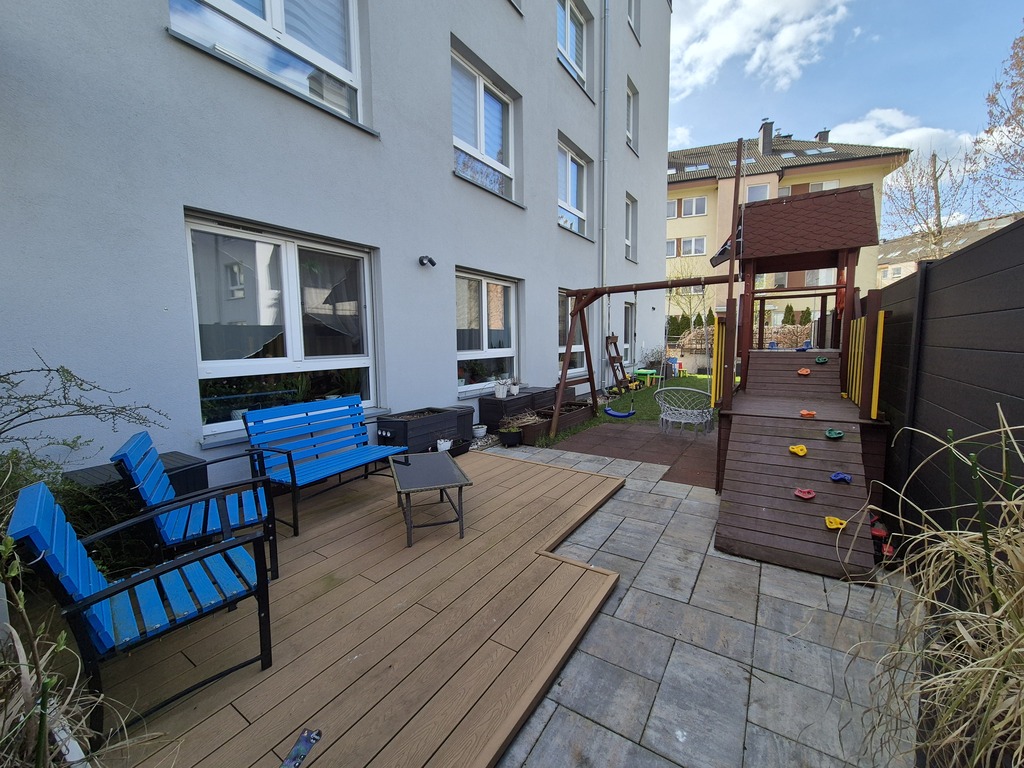 Z przyjemnością prezentuję wyjątkową ofertę sprzedaży nowocześnie zaaranżowanego mieszkania na parterze z ogródkiem i dwoma miejscami garażowymi w hali pod budynkiem. Budynek z 2018 roku - cegła silikatowa.