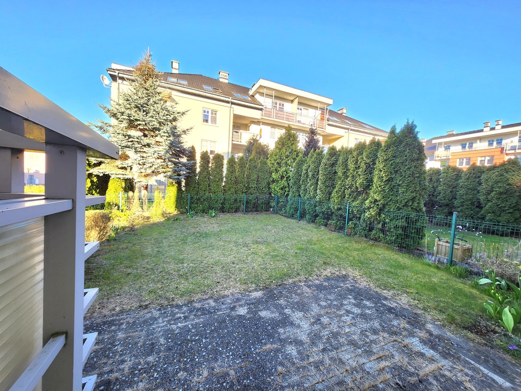 Na powierzchnię nieruchomości składają się salon o pow. ok. 18 m2 z wyjściem na balkon oraz zejściem do ogrodu, sypialnia o pow. ok. 11,5 m2, widna kuchnia o pow. ok. 10 m2 z wyjściem na drugi balkon, spora łazienka z WC oraz duży korytarz o pow. ok. 10 m2 z szafą w zabudowie.