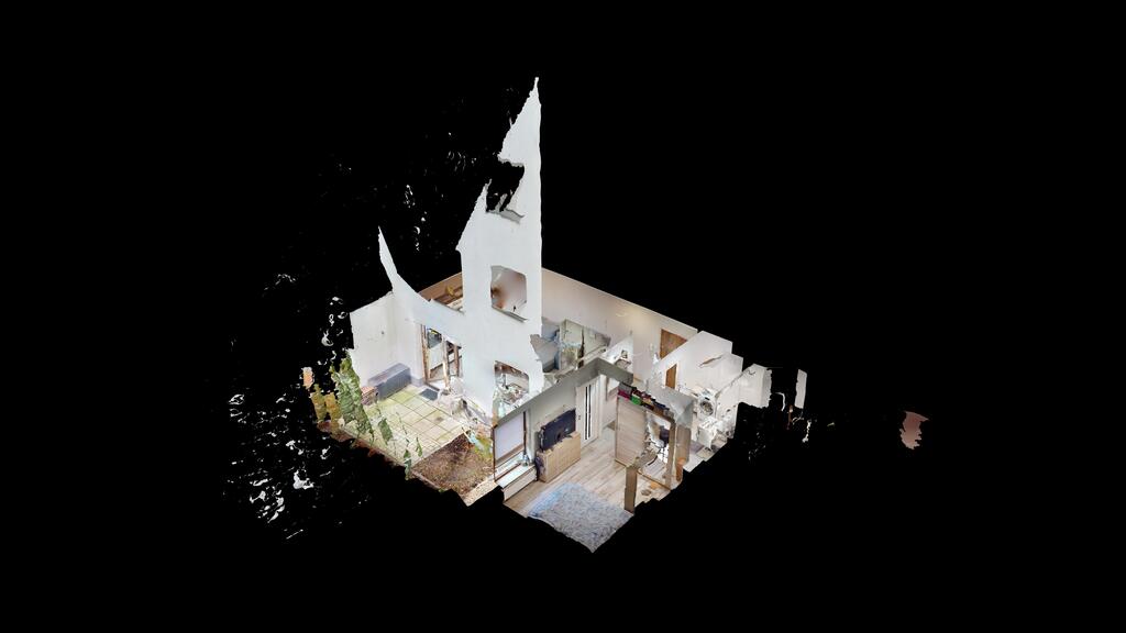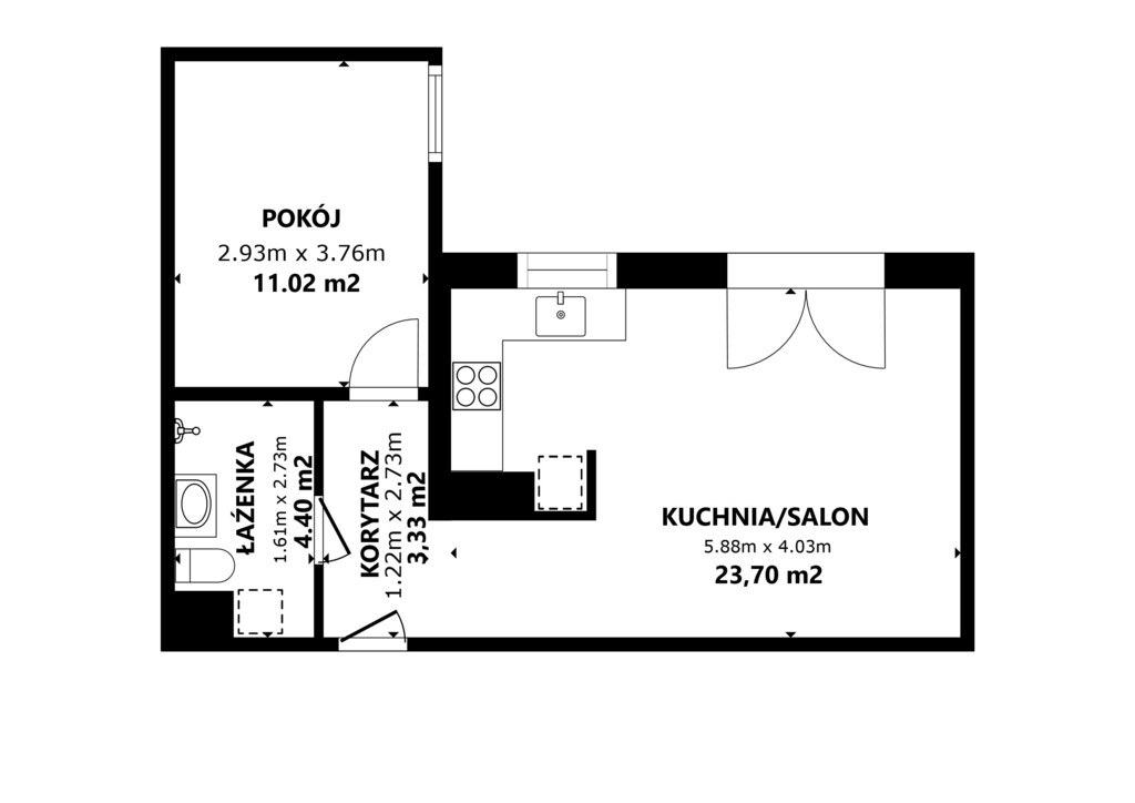 - salon z aneksem kuchennym i wyjściem do ogródka