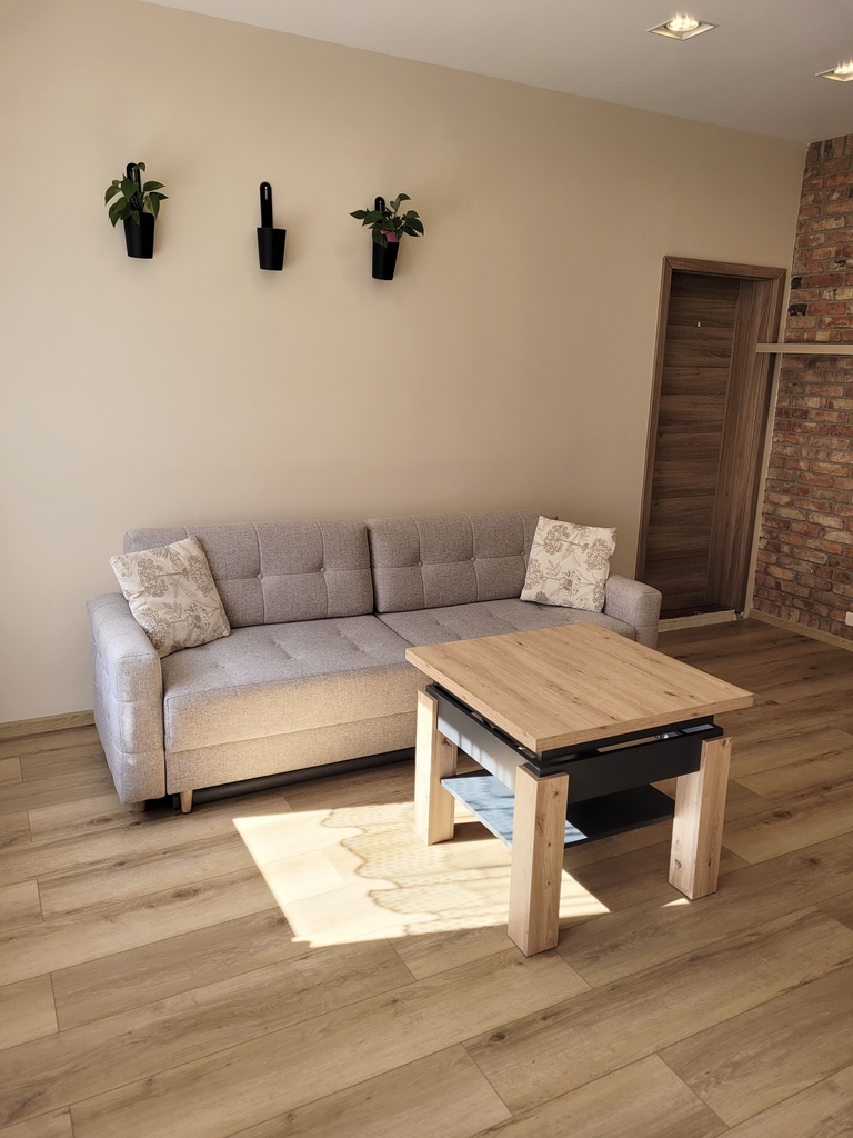 Została zerwana stara podłoga, zastosowano ocieplenie i wysokiej klasy panele winylowe Weninger. Kuchnia w pełni wyposażona.