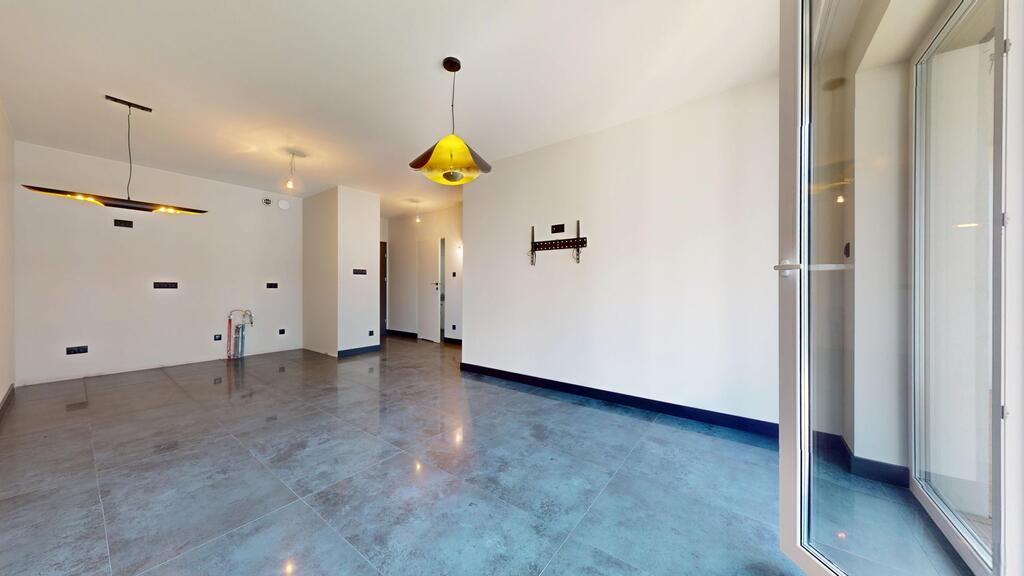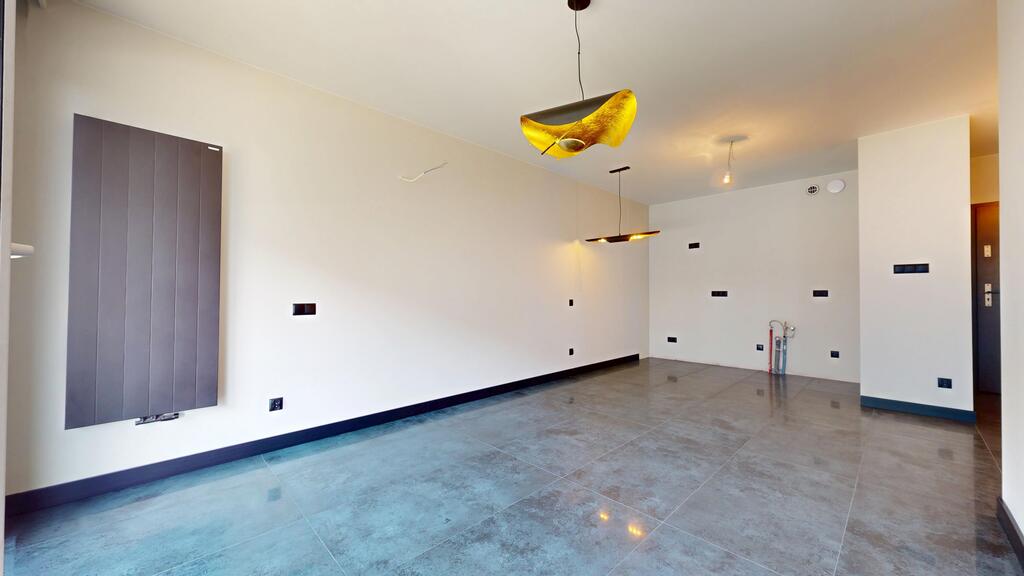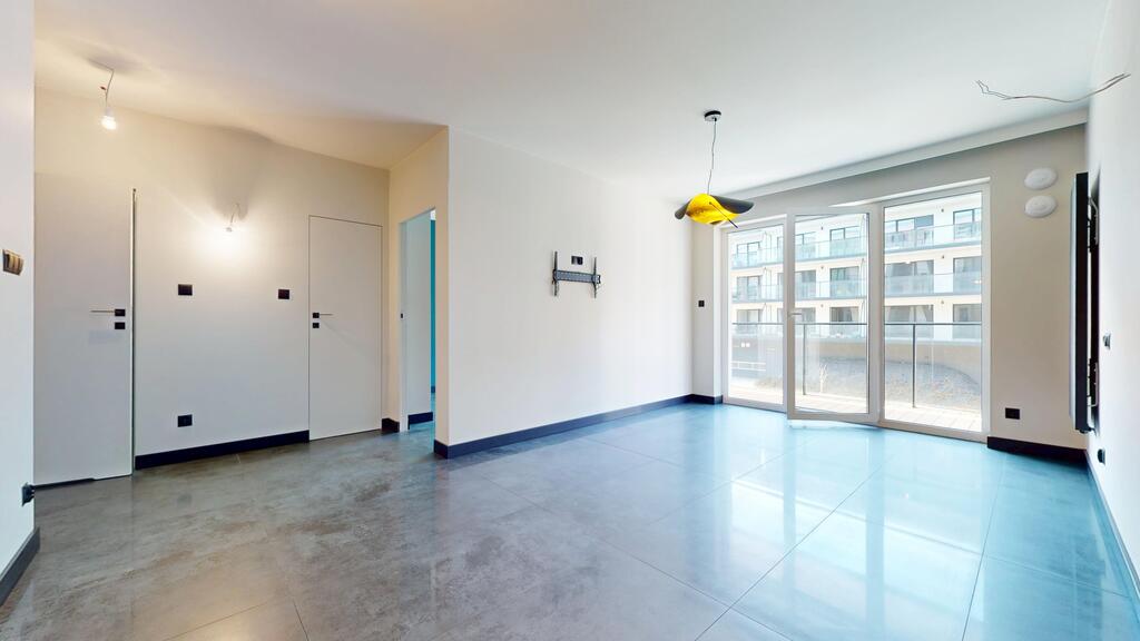 Apartament mieści się na parterze. Został częściowo urządzony i przygotowany pod kolejne prace wykończeniowe.